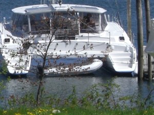 Once securely back on our mooring, it was time for the dinghy drill; affectionately named thus during our Abaco Maine Cat charter. The process is no less than 10 carefully orchestrated steps designed to align and hoist the dinghy on to its form fitting chocks by means of a bridle and various maneuvers that I can’t begin to name, but will soon know like the back of my hand. Practice will make perfect.