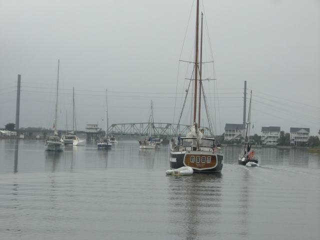 Russ speaks up: Some days … this is our life … hurry up – then wait – and wait. The bridges over the Intracoastal Waterway (ICW) are car based & pretty much don’t care about us boats! Openings are (mostly) on the hour. If you’re lucky, that means steaming along at 6 – 7 knots & being in line for the next bridge. Sometimes that means creeping along at only 2 – 3 knots for up to an hour & still having to wait (with 20 of your closest boat friends)! As you can see, there are a great variety boats traveling with us.