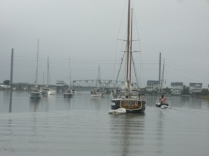 Always entertaining are the different “styles” of boaters between bridges. Some procede in an orderly formation, keeping their distance & speed. Some speed thru the pack, even though there is “no where to go”, just another bridge to wait for. Some hold back, then try to push their way to the front of the line. Powerboaters often speed past us all, rocking everyone (except us catamarans!).