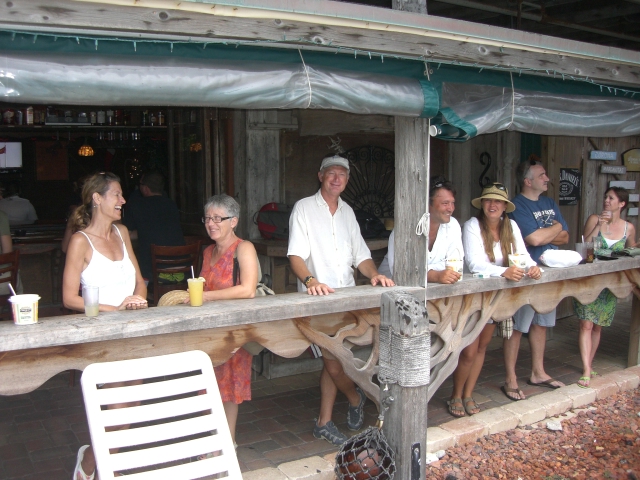 Two trips to the beach were unsuccessful in terms of sun and swim, but thanks to Waldo’s beach bar and restaurant, we were saved each time. Voodoo Juice served in 32 oz plastic buckets – you keep the bucket- was the group favorite. Tracy (SANUK) wins the prize for best duplication of a bar drink- thanks for sharing your home made version!