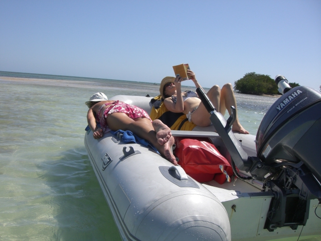 R&R was the theme for Cathy’s visit. Our third visitor awarded Ortolan 5 stars for a perfect-weather getaway in the sun. Cathy left the cold and snow behind in CT and we played in the beautiful weather with her for several days. Kayaking, sailing, swimming, beach-ing and a day in Key West – we did it all. For a more authentic experience, we threw in marina showers and a chat with one of the marina’s ancient mariners. On Cathy’s last day we jumped for joy at the chance to take a car for groceries; such a treat.