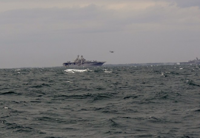 the coast, two had Osprey-type planes taking off and landing. A chopper circled, making sure no ghost or goblins approached.