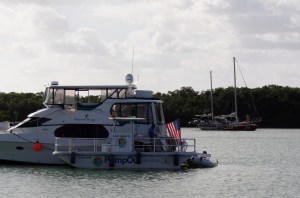 From the time we arrived until Tuesday morning, the wind kept up its 15-22kts (never saw 30 though) and Russ was in regular communications with The Hearth, the hospital and then the convalescent/rehab facility, his brother, brother-in-law, the movers and no doubt a few others. Good thing we weren’t on the move. We hiked the mile to Publix a couple of times, picking up On Stranger Tides from the Blockbuster box. By Tuesday afternoon all our packages had arrived and Russ re-installed the port A/C circuit board to be sure it worked. All kinds of progress, except the reason we were here in the first place; the sail drive seal issue. No word.