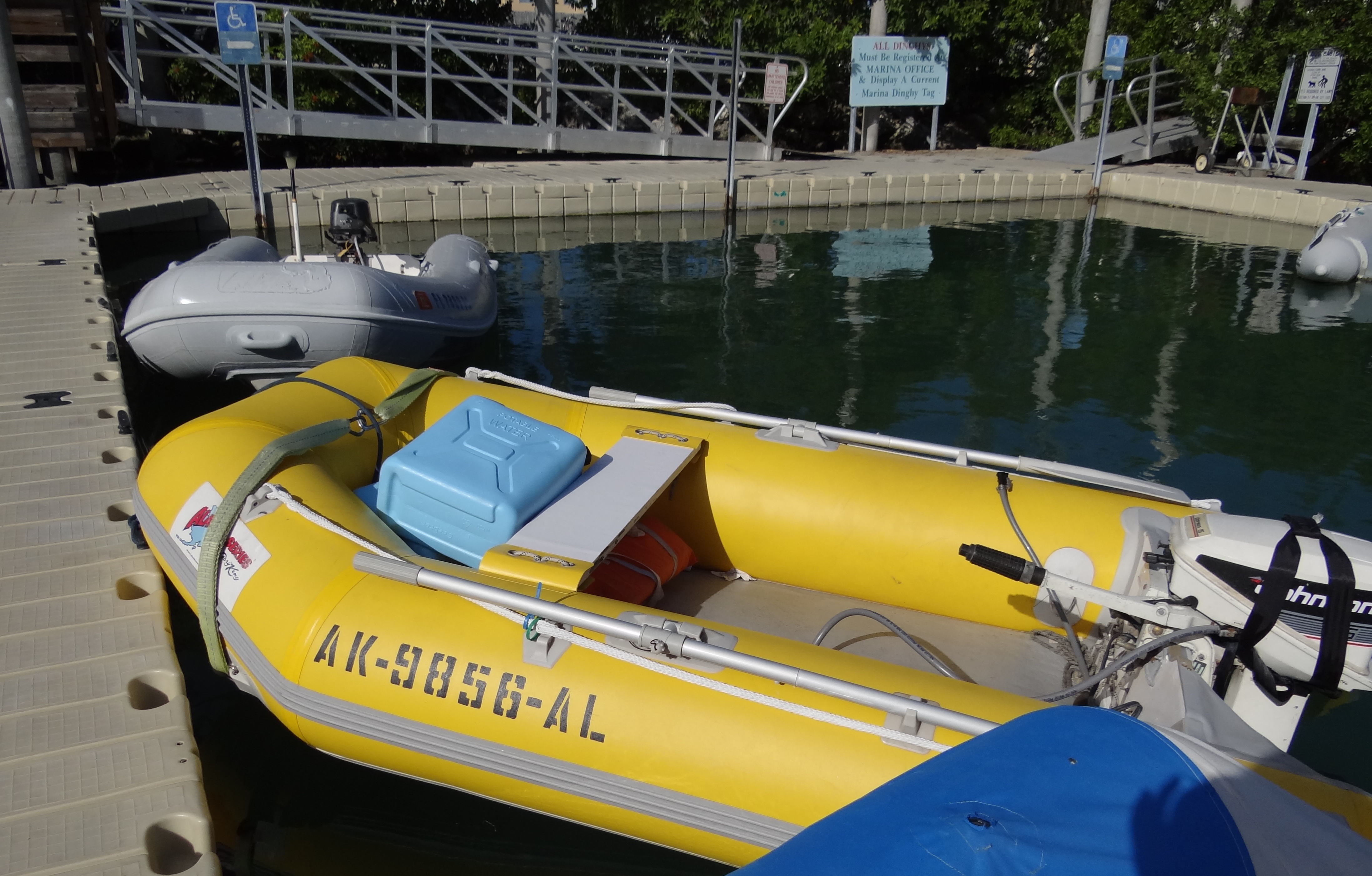 We chat about his and ours. His being an Alaska model with a special gray material along the rub rail and covering the underside. The elements being a tad tougher in Alaska gives companies a reason to develop better materials and construction methods. This particular dinghy was the owner’s second one, the first came apart. Why ? I’ll give you a clue. Heat. The glue that worked so well in chilly Alaska fell apart in Florida. The replacement is a test model of sorts to see if the re-formulated glue holds up.