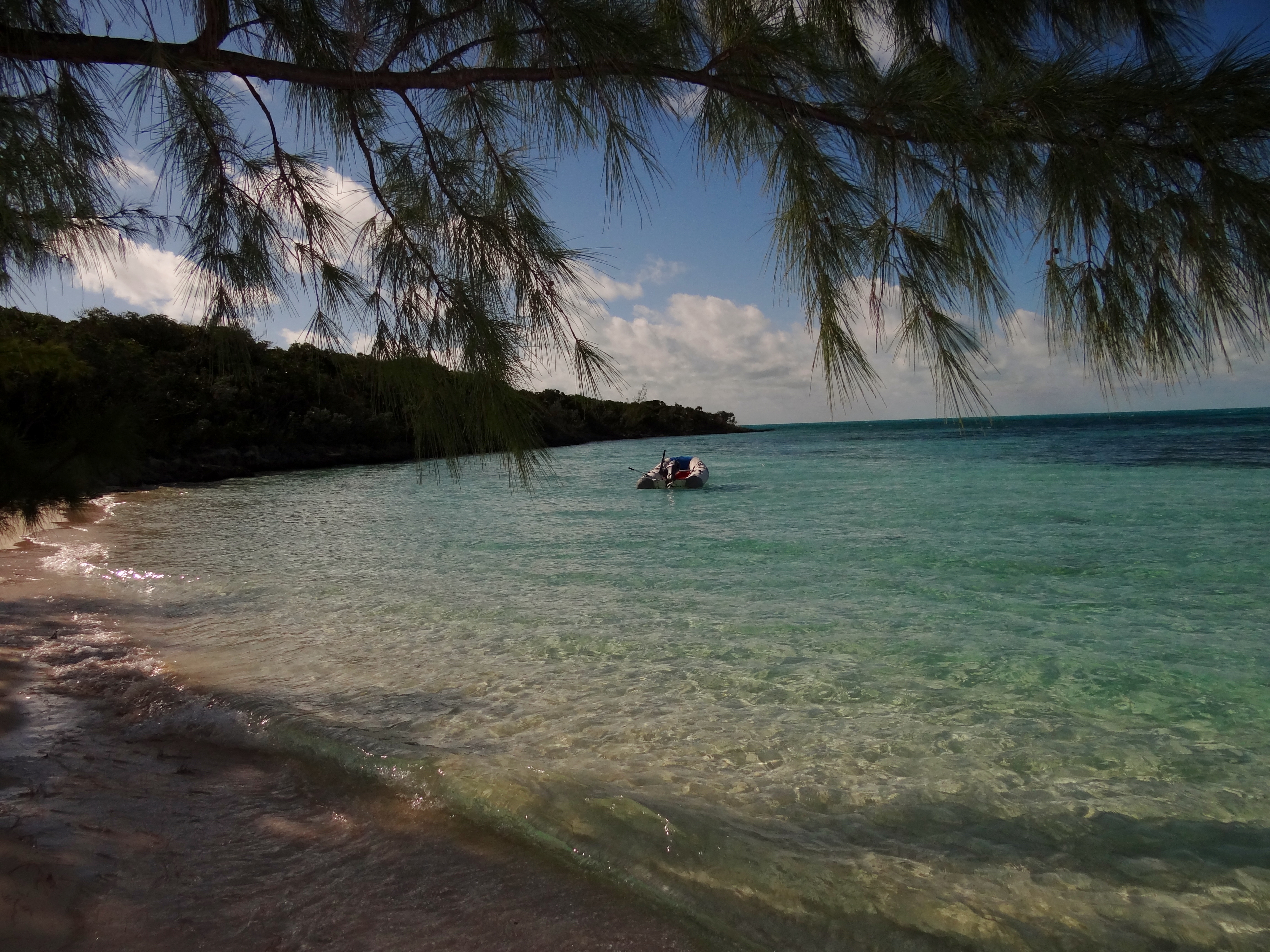 Motor sailing for lack of wind, we arrived at what is generally known as Devil’s-Hoffman. Several tiny cays (hope you are pronouncing this “key”) are closely scattered between the two larger ones. We planned to anchor in the lee of White Cay off its pretty sandy beach in plenty of water; plan B was behind Saddleback or Fowl Cay. In the Bahamas, much of what we take for granted in our east coast cruising is a bit sketchy. Charting is not as extensive or as up-to-date and depths may not agree to the chart – paper or electronic. Any wonder that the first page of the Explorer Chart book provides excellent photographic examples of how to read the water along with advice to have enough sun overhead to do so, especially when close to land.