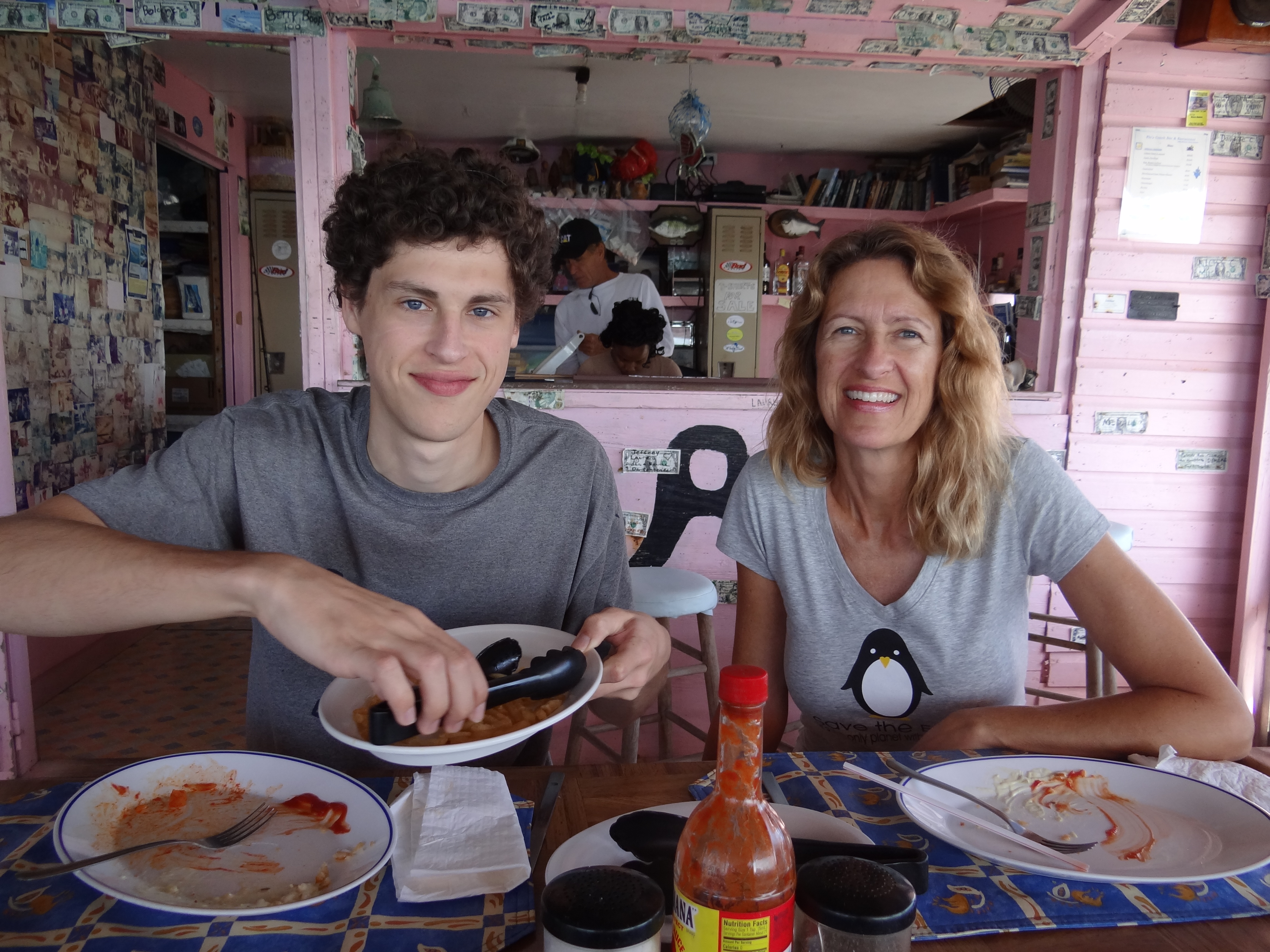 Wednesday was our best sailing day; unfortunately it was also our shortest hop. All of 5 miles south to Little Harbour Cay and a spot next to Cabbage Cay for lunch at Flo’s Conch Bar. The wind was slowly wearing itself out and we were pumped for a few great days ahead. Next stop, the Berry Island Club on Frazer’s Hog Cay. But wait, cancel that- important intel from another cruiser says that the BIC was closed down and as of a week ago they had no wi-fi, but moorings might still be in use. We needed wi-fi so Benj could email his paper which was due Thursday. Internet withdrawal was creeping up on Russ and I and we needed news about his Dad.