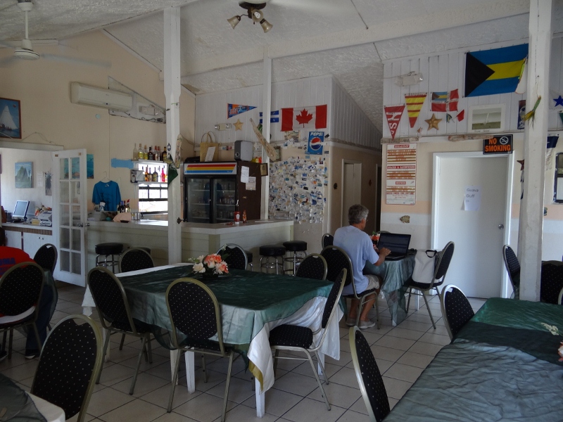 Black Point drew us in for several reasons, and if you are thinking food was one, you get a gold sea star! The others were: a large and protected anchorage that would provide a buffer from the N/NE cold front winds, three restaurants two with wi-fi, one grocery, free trash disposal, large dinghy dock and a killer laundromat with twelve washers, ten dryers, its own dinghy dock and reasonably priced at $3.50/load. My thought was the only thing missing were showers; later we heard Rockside announce that the token operated showers were open! Not that we needed them, but others might. Think I’m in heaven. George Town might have more to offer but with that comes 300-400 boats anchored in Elizabeth Harbour in peak season.