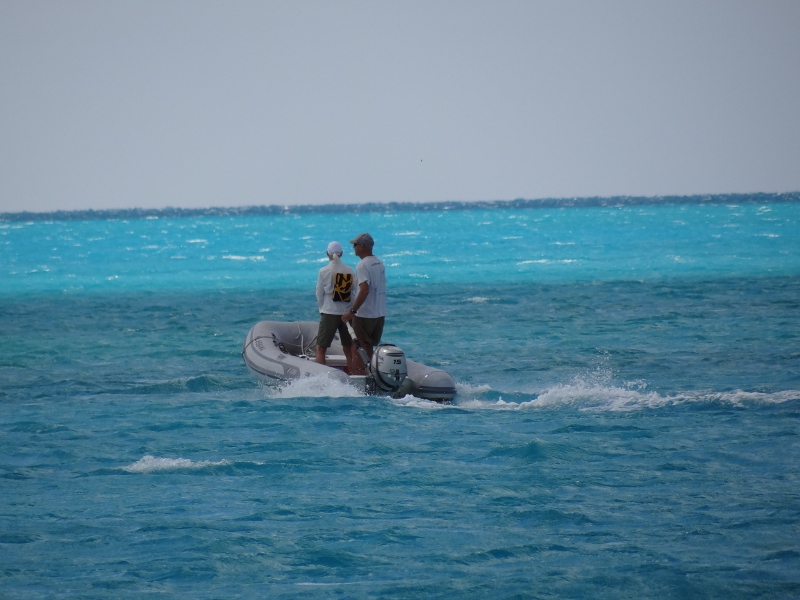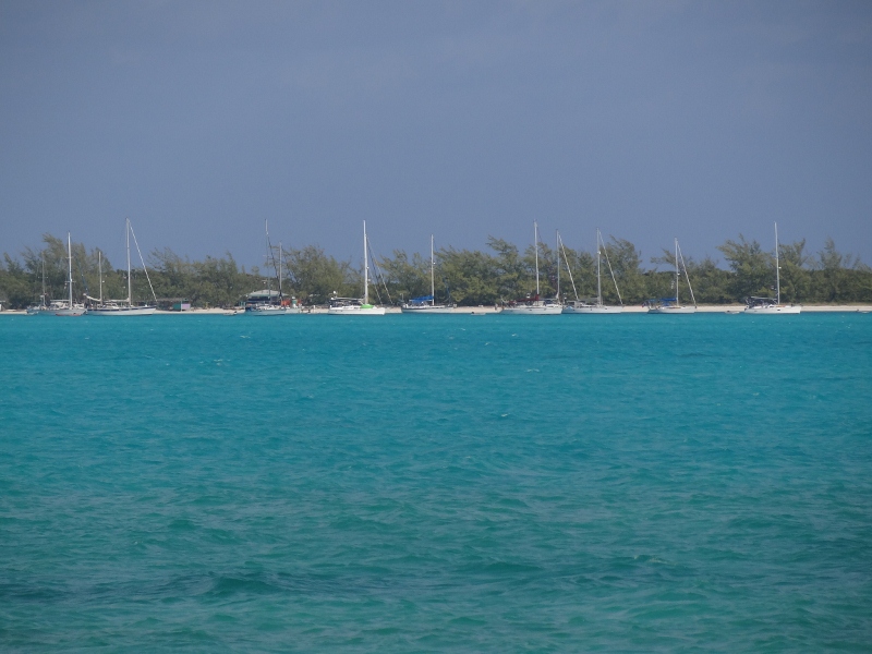 Unless you are anchored in Kidd Cove right near the entrance to Lake Victoria- the hub of George Town you’ve got yourself a mile-plus dinghy ride. We won’t mention the continued problematic chaps on Bunting – nooo, the problem side doesn’t get lifted off out of way because the Velcro/Hypalon patch worked soooooo well- unh uh. Many who spend serious time in GT have adopted the GT dinghy stance, made necessary by the very long, often wet ride into town or even to one of the beaches from your home base. We’ve noticed that boats will leave their spot to spend the day in Kidd Cove then return and re-anchor just to avoid that fun slog in to town.