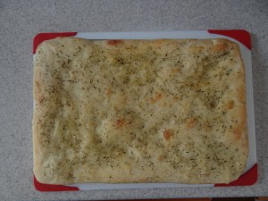 The other day we found a great book at the library, Artisan Bread in Five Minutes a Day by Jeff Hertzberg, M.D. and Zoe Francois. Fabulous, easy and delicious recipes. We are gung ho on making and consuming as much as possible. Russ made a yummy rosemary and shallot focaccia bread to bring to our very first happy hour on the beach. Not only was it a hit; it provided a topic of conversation when we set it out.
