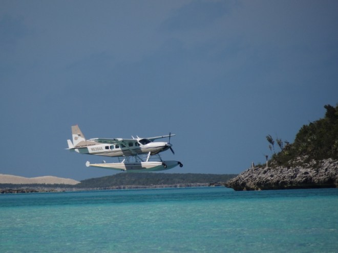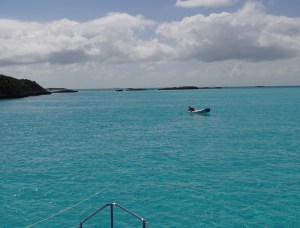I wasn’t too sure about this spot when we arrived, although Tina on Mattina and an ActiveCaptain review said it was a terrific place, a favorite, in fact. Within a day I was in complete agreement and would return in a heartbeat. Over the 3 ½ days we spent relaxing here (ok, so we hardly needto relax), we checked out several beaches on both the east and west shores, enjoyed the company of a barracuda who hung out in the shade of our hulls, watched the seaplane land and take off every day and got our butts in gear enough to deal with the shower sump pump, bake bread and brownies and plan our exodus from the Exumas within the next 10 days.