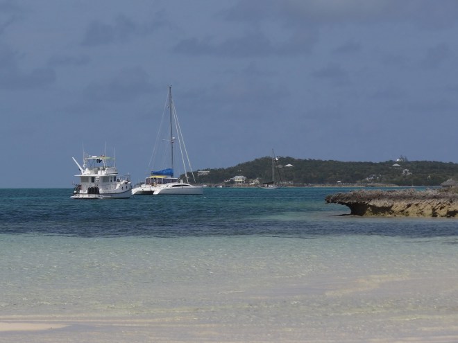 There’s this place…. a sandbar dry at low tide, sand, shells, sea glass, a backdrop of tall, swaying palms. Barely noticeable on a wisp of land on Elbow Cay’s west shore in the Sea of Abaco (Sea? More like Elizabeth Harbor) sits innocent Tahiti Beach. She reveals her charms slowly as moon pulls the water away. About two hours before the appointed time, you can walk over from the nearby cottages/villas or anchor your tender off the beach and play in a piece of paradise. A place for all ages, as even the teens and 20-somethings use the beach for kite boarding when the wind picks up.