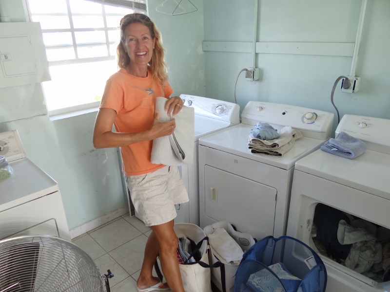 Good thing we enjoyed the first half of the day since the rain goddess was quite unhappy; mood swinging from a few sad tears to a full-blown down pour crying jag! We beat the showers after lunch, and then watched the clouds on radar trying to figure out what was going to happen when. Looked obvious our BBQ on the beach was going to end up a wash out, so we headed in to scrounge at the grocery. There we are at the checkout with our $6 Pepperidge Farm Coconut Cake. I look up; the wind is blowing and the rain is pelting down in buckets. Half the shoppers hang out for 15 mins by the door; even those with rain gear. Neither dry nor drenched we zoomed back to Ortolan. Naturally, that was it for the rain and we could have gone to the beach BBQ for dinner. I drizzled rum on the cake- we ARE in the Bahamas mon – and that made everything all better.