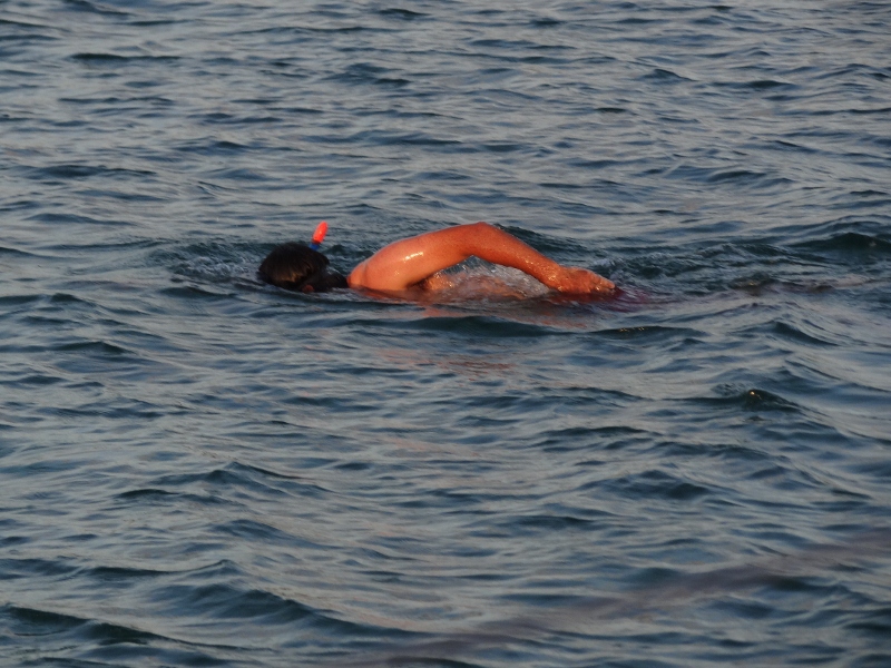 Time: around 6pm, I’m in the galley pretending to prepare dinner while gazing out the window. The window sits about 3 feet above water and allows for a great view at near-water level. Would you be surprised to see someone swimming right toward your boat? I mean, headed straight to it, from the beach about 100 yds away. He’s wearing a snorkel mask, swimming smoothly and steady. Oh honey, get your clothes on- well, he’d just taken a shower- someone is swimming toward us. A whole bunch of thoughts passed through my mind, but I finally decided someone wanted to swim and we made a good marker and if he got too tired he could rest. Russ goes out (with clothing) to light the grill- see, I really was prepping dinner- and Mr Swimmer gets to the stern and without sounding out of breath, “hi, you guys staying here long?” Umm, how do you take that? Like as in, I’m scoping out the boat to rob you when you get off, or as in, are you visiting Green Turtle Cay for a while? He said his visit was ending the next day, he wanted to get in a challenging swim, so he picked our boat (well, it was the only one anchored off that beach) to swim out to. Young kid, twenty-something and he was a good swimmer. We wished him luck- oh you think a dinner invite would have been more friendly?- and watched him swim back.