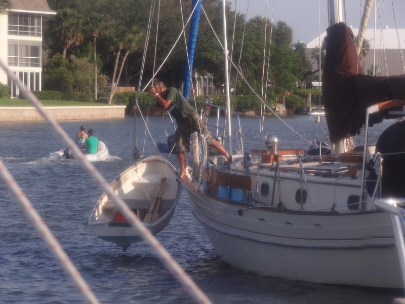 Friday evening a cold front passed by and by 8:30 the Garmin display read 22kts, plus. At 8pm the local Coast Guard sector at Fort Pierce announced that two people in a blue canoe just north of the Sebastian inlet were not able to get back to shore and to keep a sharp lookout. By 10:30 when we turned off the electronics I don’t think the canoe had been found. The local fire and rescue squad via small boat and helicopter was searching for the boat which had been spotted in the ICW. The lively north wind would have pushed them south, perhaps on to one of the tiny spoil islands. Assuming they even NEEDED help we hope they are home safe and sound, or as Russ suggested, they were back nursing a brandy at 9:30 oblivious to the search.