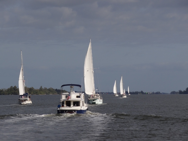 Joy! The camera-shy manatees were out in force the day we transited one of my top 5 fav sections of the ICW; the Mosquito Lagoon. This was made possible because we FINALLY ripped ourselves away from mooring ball #34 on Sunday, along with at least 15 other cruisers. This being Easter a parade was in order; bonnets optional.
