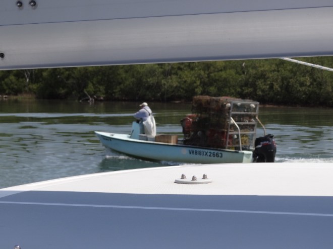 To get to the Mosquito Lagoon from the Indian River you go through a cut in the land and ask the bridge tender to open the bascule bridge for you. The approach to the cut is strewn with tiny spoil islands & sandbars; a fisherman’s heaven. Kayakers will find a small launching ramp so they can be up close and personal with an area perfect for exploration. A slow, minimum wake manatee zone sign had us moving along at less than 5 kts. The bridge opened and as we passed through we could see a short ways ahead, a slight disturbance in the center of the channel. This could only mean one thing; a manatee. Well, it could be a dolphin, cormorant or large fish, but I do believe the signs talked about manatees! Sure enough, there he was lolly – gagging about- huge guy too. The photos I tried to get do not show how large he was.