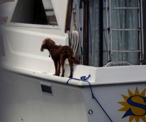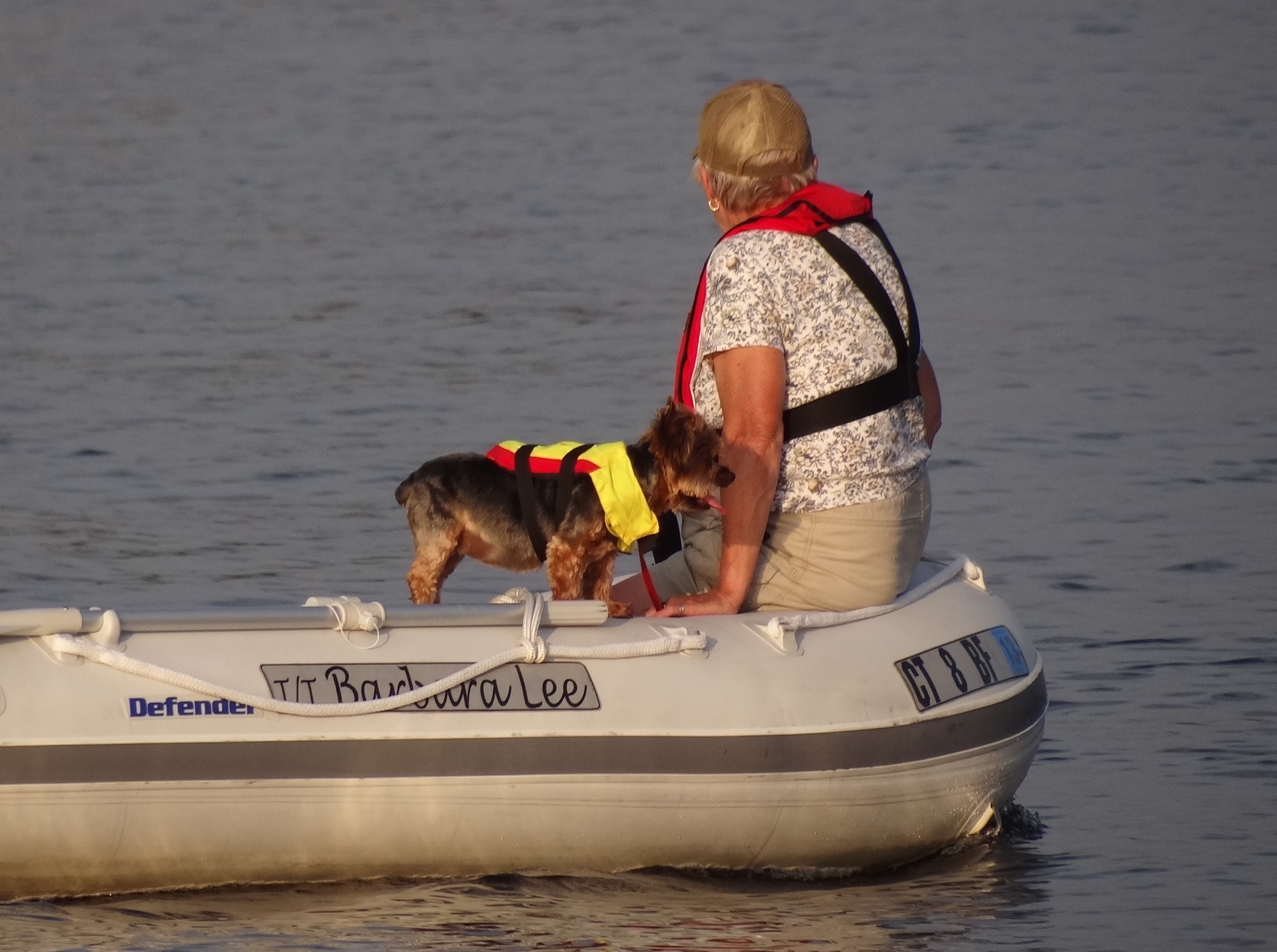 So many dogs surround us; mostly on weekends. They are fun to watch and never any trouble. Several boats on our dock have dogs and they are not life jacket-wearing dogs. On the docks across the way several of those cuties wear jackets. The smaller dogs seem to be the ones with jackets on- at any moment one could mis-step and plop right in.