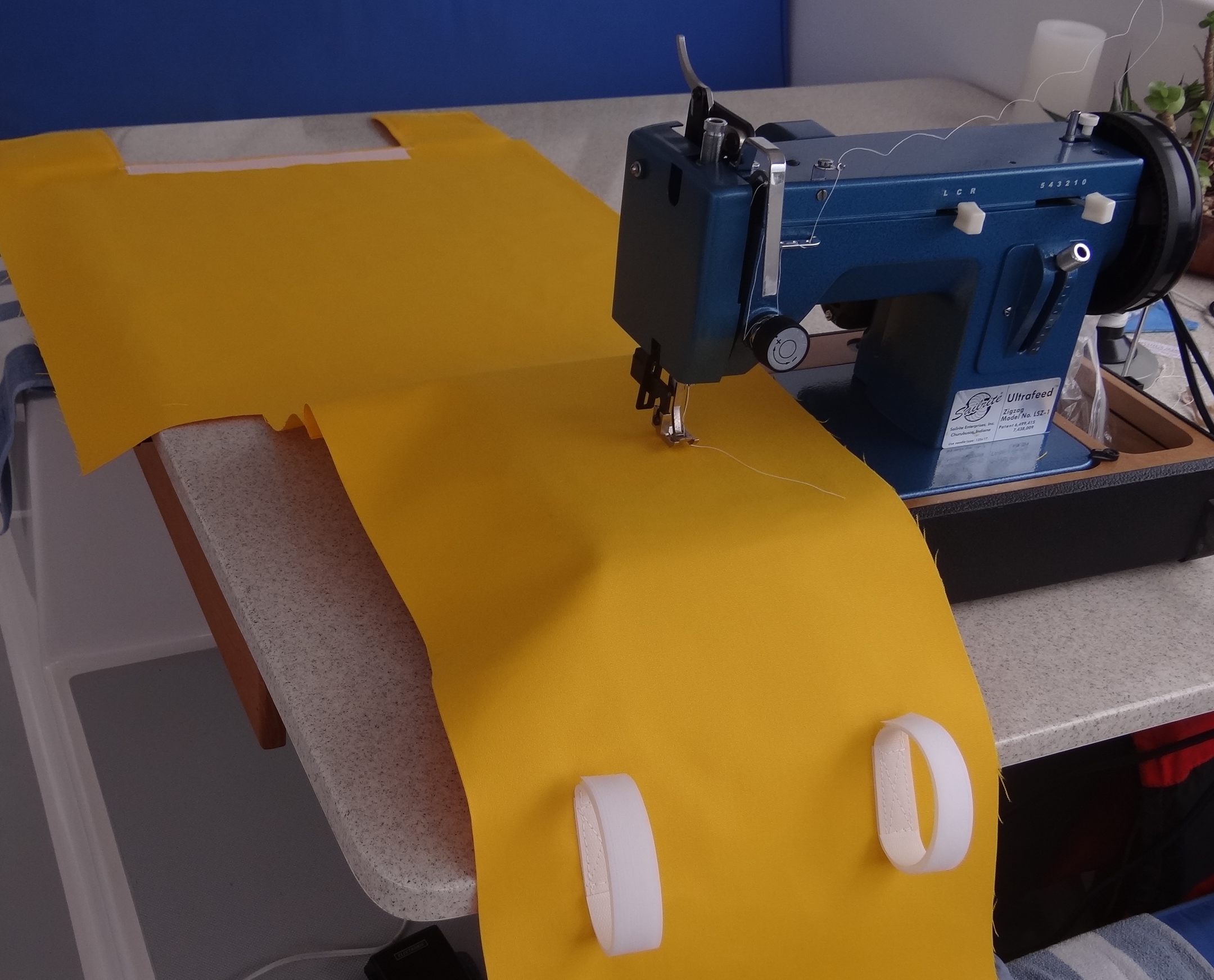 The curtain project required my Sailrite Ultrafeed LSZ machine- the boat anchor in a box, no weakling can lift it machine. Machine and carry case- what? Are they crazy? You can’t carry this thing; you can barely lift it on to the table! So you know who does that; no spur of the moment sewing for this faux-seamtress.