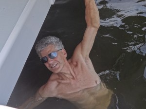 The other day I figured out (sadly) the sound I’d heard about a week ago. I was reading (maybe I should have been scrubbing the boat) by the stern when I heard this awful, screeching sound; not high-pitched and I wasn’t sure if it was manmade or natural. I looked over toward the island where the swans, ducks, egrets and herons hang out in the marshes; didn’t see anything. Decided it might have been a heron, albeit one in some distress. Fast forward to the other day when I hear the same sound. Grab the binoculars. Ouuu- I see a hawk or osprey flying off with something in its talons. I’ll leave it at that.