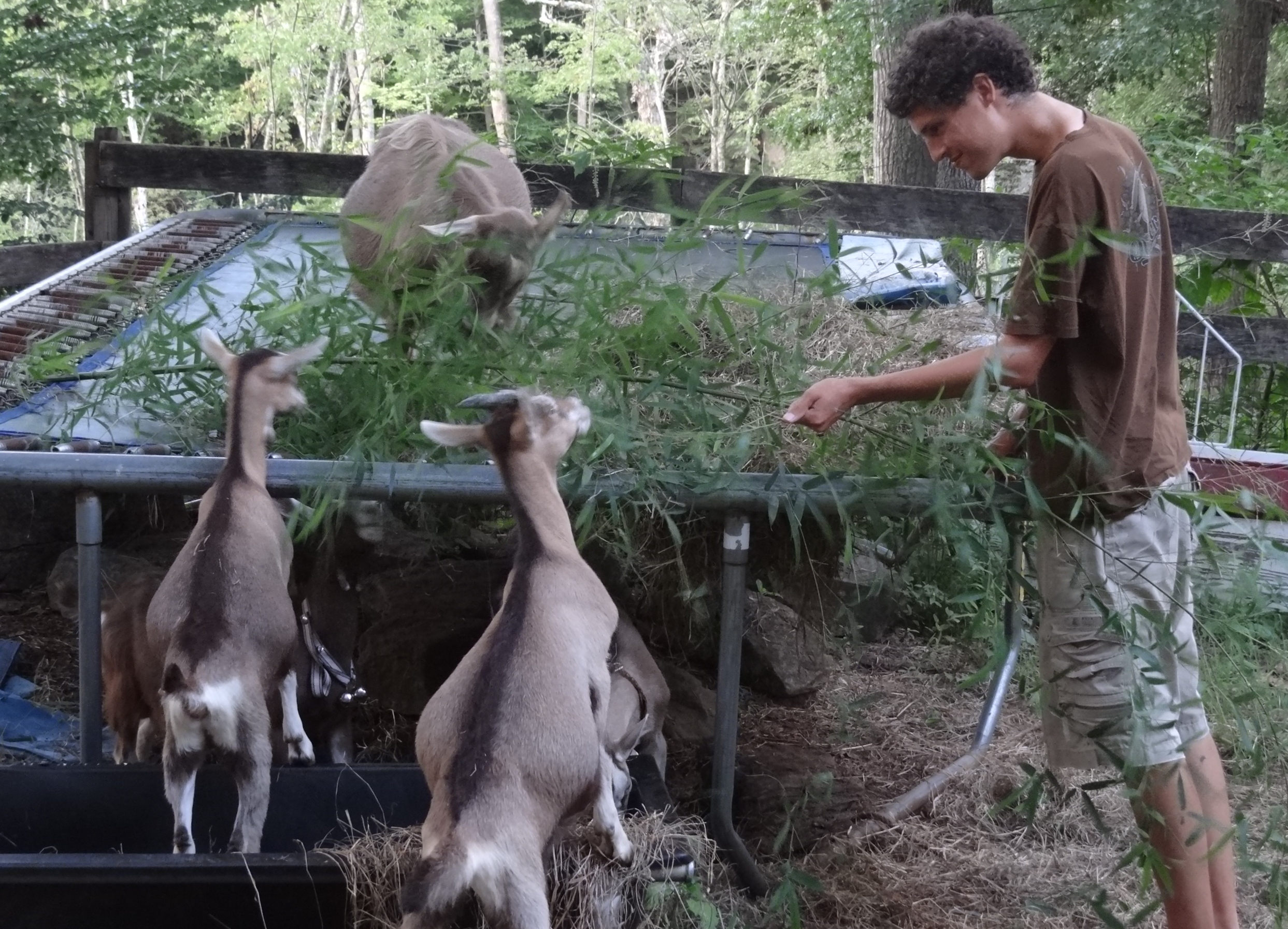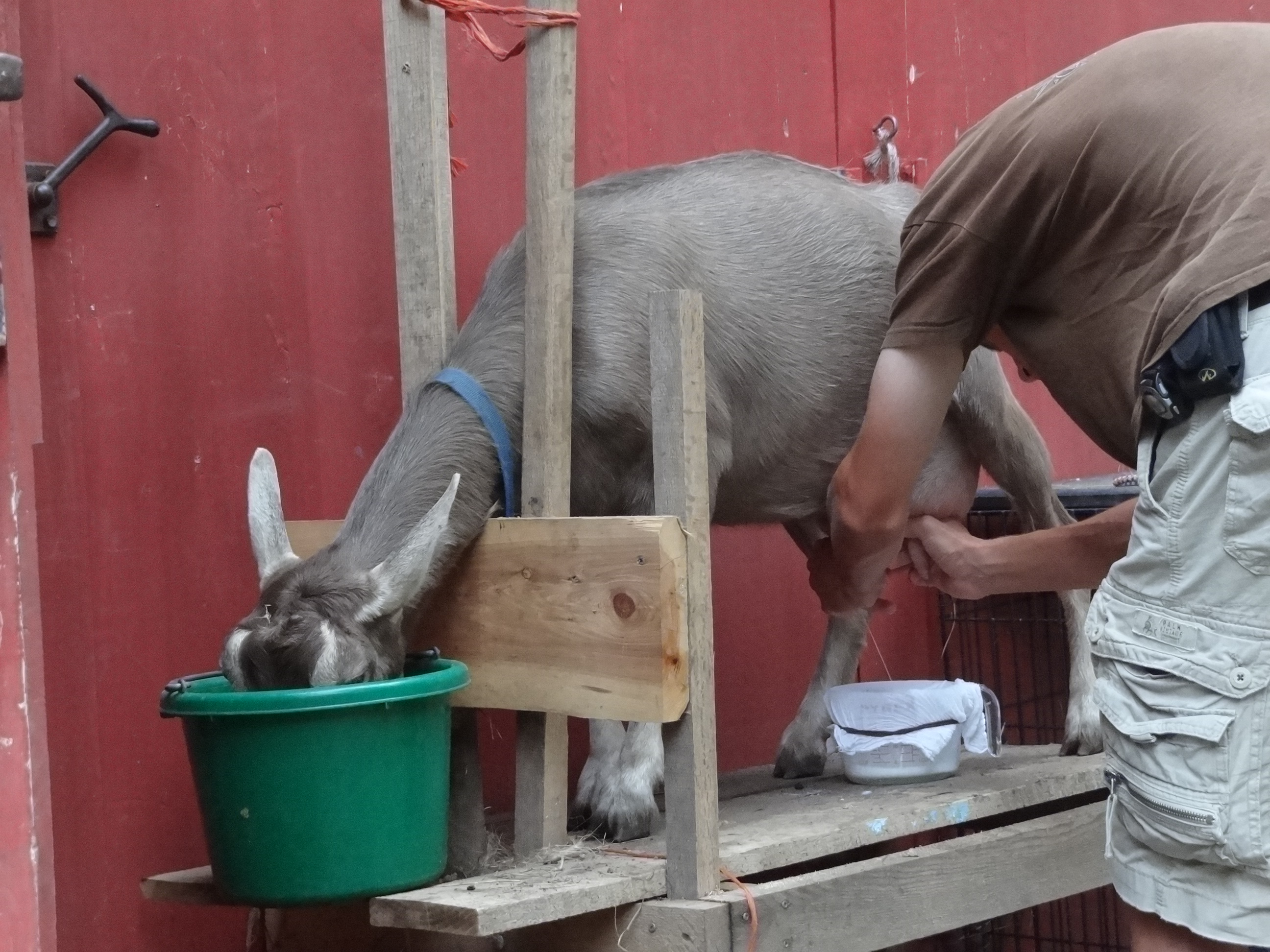 Benj worked 4-5 days/week at two jobs and ended with house sitting for his landscape employer. Not just house sitting, this job entailed harvesting the vegetables; caring for the goats, chickens, horse, dog and cat and mucking (cleaning) out the small barn. What to do with tons of pickling cukes, tomatoes and farm fresh eggs? How about refrigerator pickles, salsa, ratatouille, give away all you can and enjoy runny fried eggs and home fries (yes, they grew potatoes too) for breakfast. Best of all, he could milk one of the goats who was still nursing her kid. For ages (since the 18thcentury), female goats were referred to as “nannies” and intact males as “billies”. More recently the trend among farmers is to use the term “doe” and “buck”. ‘The Three Billy Goats Gruff” will not require a re-write- thank goodness. Warning- goat humor- what do you call a goat swimming in the sea? Billy Ocean. (not a Lori original)