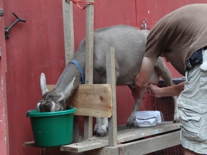 We brought dinner a few times, supplemented with side dishes Benj made. The goat milking operation was fun to watch as Benj showed Sara, his evening helper how to milk the goat. She caught on right away. Sara filled in on weekends when Benj worked the POB and the couple days when Jack and Kerry visited from CA.