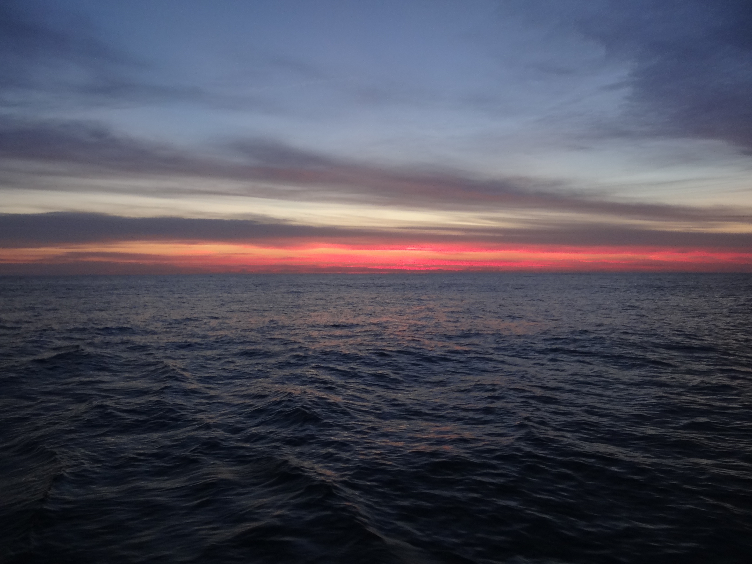Tues Oct 16: 4 stars, but only because we sailed all day until 10:30pm. In prep for the winds on Sunday, we’d put two reefs in the main and if nothing else, that was our smartest move so far. Shortening sail on our MC 41 is not an easy operation (the captain insists it’s easy though) and one ideally performed ahead of time if you have the luxury of clairvoyancy. The forecast proved correct and we sped along, often near 9kts thanks to NW 20kts+, gusting to 30. The waves grew but the worst part was that since they’d been from the south for days, that once the wind switched to NW the waves only managed to come from the west which meant they hit us mostly broadside. People describe catamaran movement as hobby-horsing and we earned that label big time until FINALLY, just south of the DE River entrance, we enjoyed a true following sea and bliss.