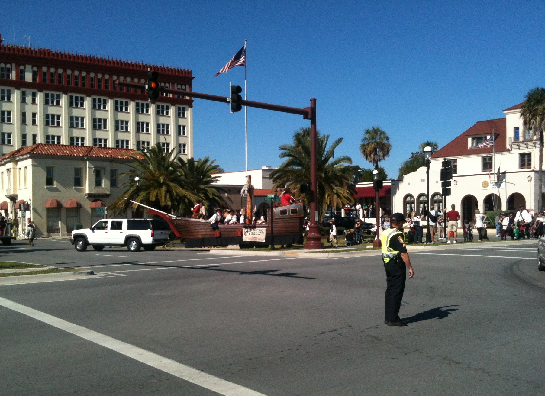 Veterans’ Day weekend brought a pirate parade and other related activities to St. Augustine. We caught only a glimpse of the parade.