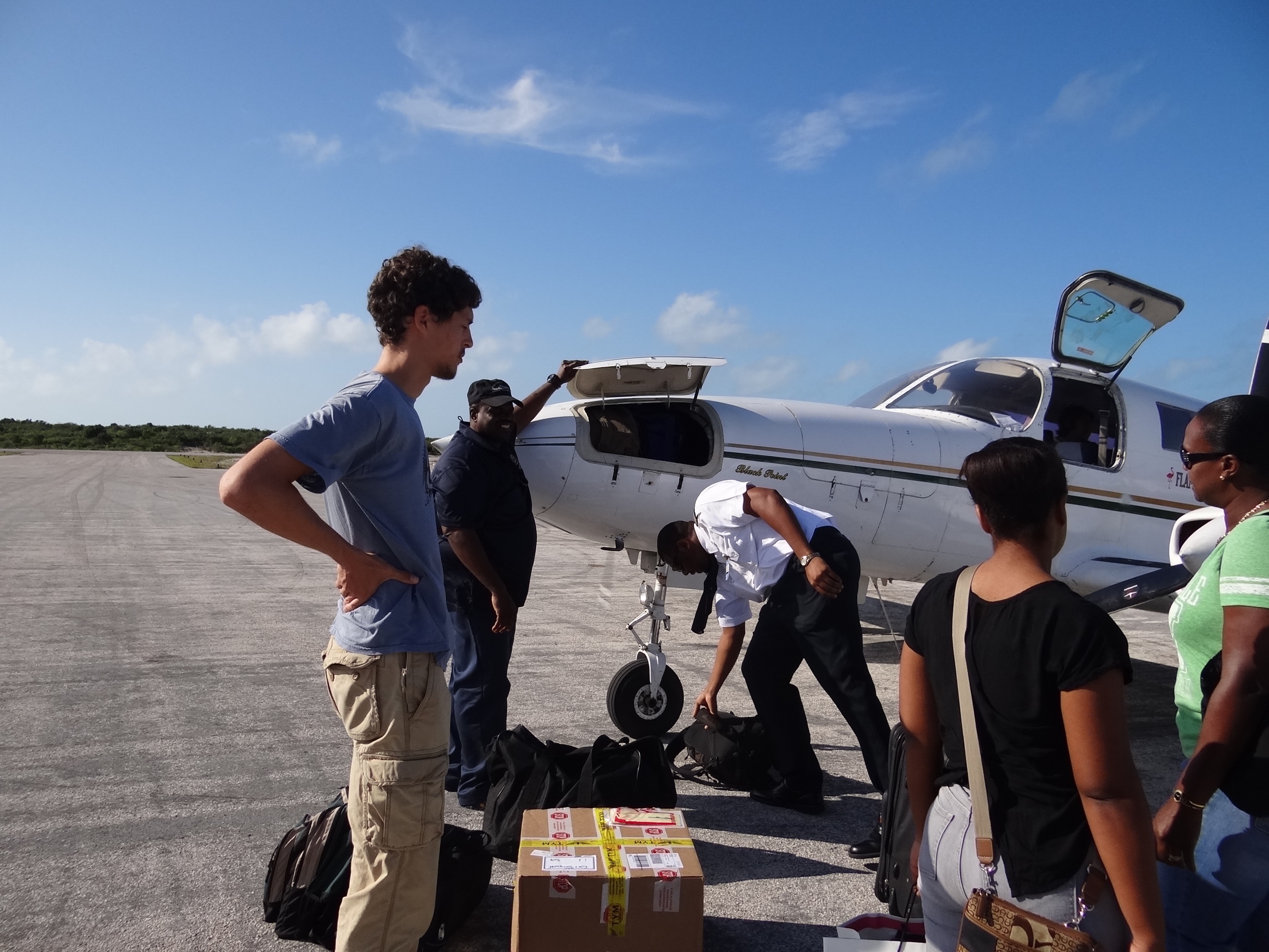 Da plane, da plane! Monday was the day. We arrived in plenty of time to relax and take some pictures. We’d heard that Ida wasn’t going to be at the Laundromat on Monday- well that’s because she and her daughter were flying to Nassau. A couple others joined us including the ticket agent. The plane landed- was the 9-seater rather than the 14; the pilot gets out and loads the baggage in the compartments by the nose, we say our final good-byes and the passengers stuff themselves in. The scenic flight to Nassau would take about 45 minutes. Parting is such sweet sorrow. Oh, i forgot to mention that the Creative Blog Writing portion of the visit had no takers; maybe next time 🙂