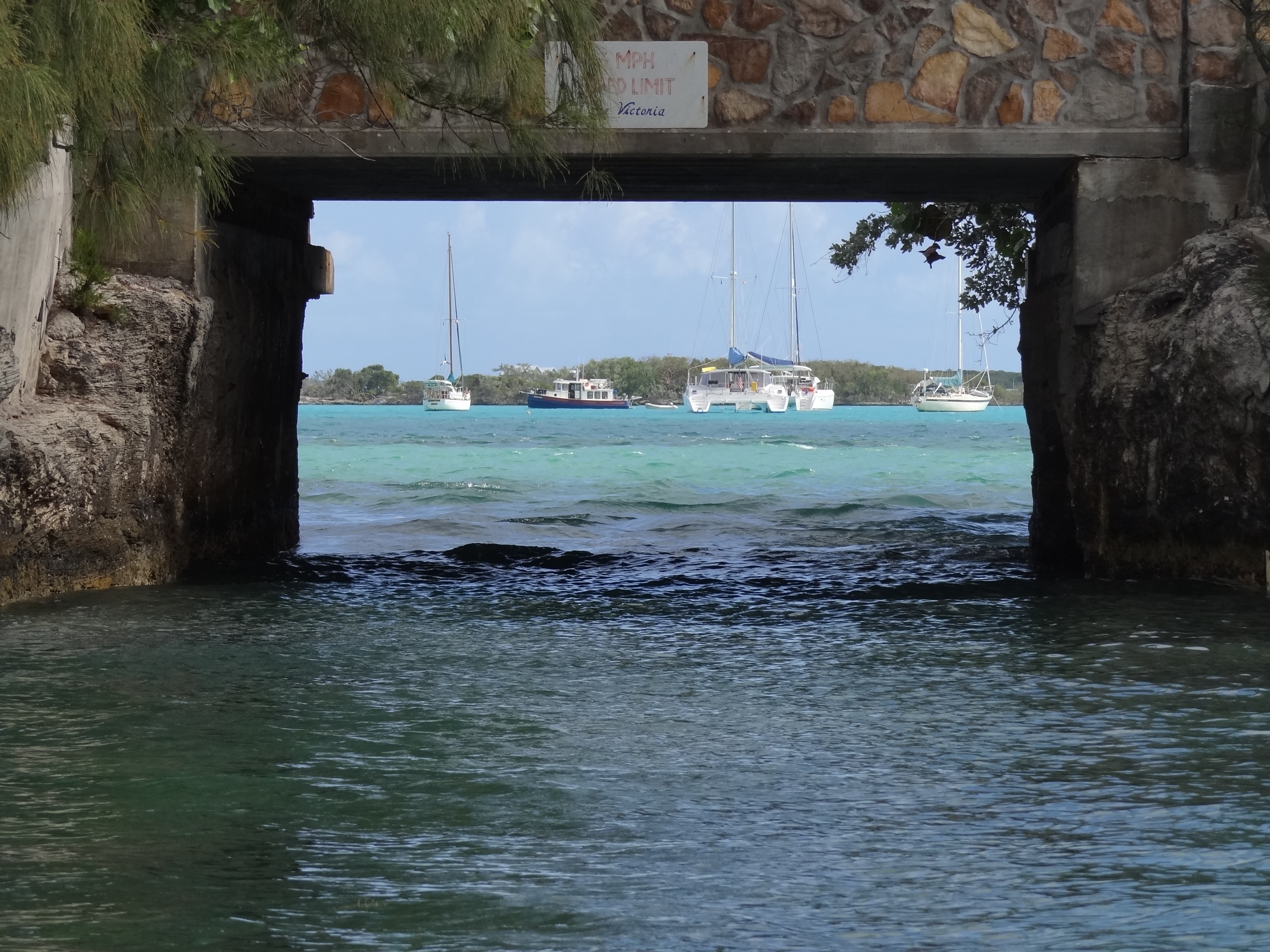 By 4pm we’d gotten ourselves anchored in Kidd’s Cove; looked behind us and hey there was Northstar who we’d met in Nassau. Made a quick trip in to the market; first removing some cash from the ATM at Scotia Bank across the street. The next day was a major re-stocking day; many water jugs filled, 3 jugs of diesel, outboard gas, a big market trip (lucky us that fresh produce just came in), liquor store, library for trading and regular lending and after all that another stop at the ATM was required. Wed the propane truck would be in and Russ would take our empty tank in for an $11 fill-up. Thursday, the wine we wanted was in at the liquor store, so we headed in for a wifi fix first. This wine is one we’ve never found anywhere else and the single bottle price is $7.15- not bad right? Buy 3 the price drops to $6.44 and for 6 or more the price is $5.50 each. Lazo, Sauvignon Blanc from Chile- the best deal in the Bahamas. Helps to counter the high cost of everything else. 🙂