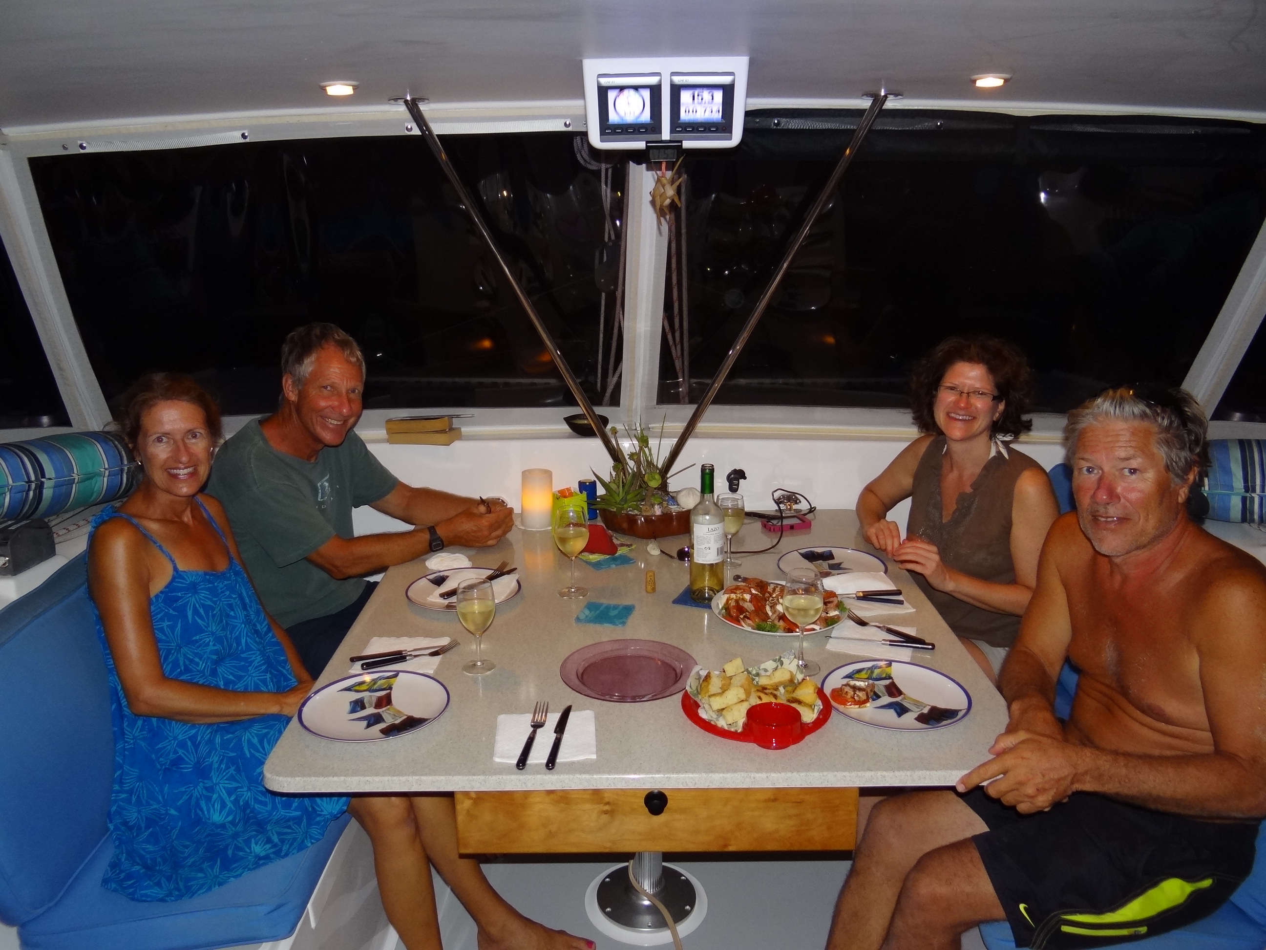 hailed aboard Insatiable for gin and tonics with lively Cruisers (steady supply of tonic is what you can make with a soda stream machine!), and home for grilled lobster and coconut rum brownies. Whew! and that was just the first day:-0)))
