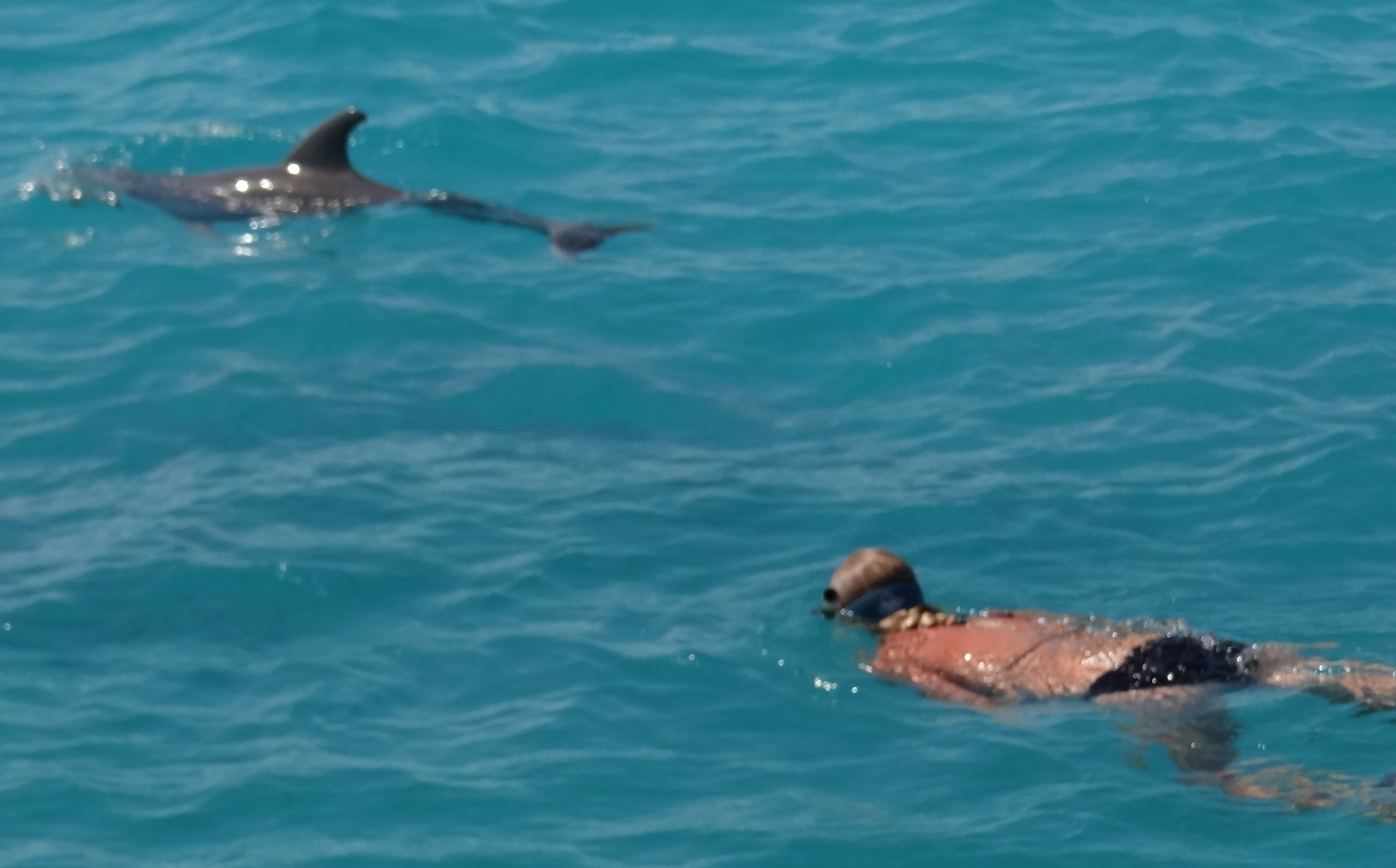 After a long après-visitor recovery period- no, only joking. The dolphins returned for a leisurely swim around the boats; Patti donned snorkel gear to swim with them and I considered it, but hey someone has to play photographer.