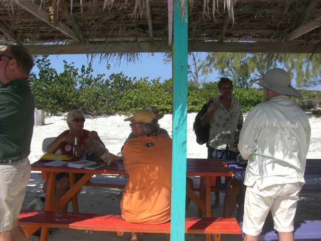 S/v Friendship put out a request for an info-share meet re: Long Island and Eleuthera on Volleyball Beach so we did that and met some nice folks, including Keith on s/v Camelot from Old Saybrook, CT. I don’t need to mention what Cort and Frank were up to; volleyball what else? After the games Russ received a second massage from Agnes on s/v La Dame En Blue. Her former occupation was a circus acrobat and massage therapist for the acrobat team; I may not have that exactly right but I’m darn close. Not Swedish massage but a lighter touch method that provided excellent temporary relief. She wouldn’t accept anything; the standard “giving back” line, but we did manage to sneak a bottle of red wine to her.