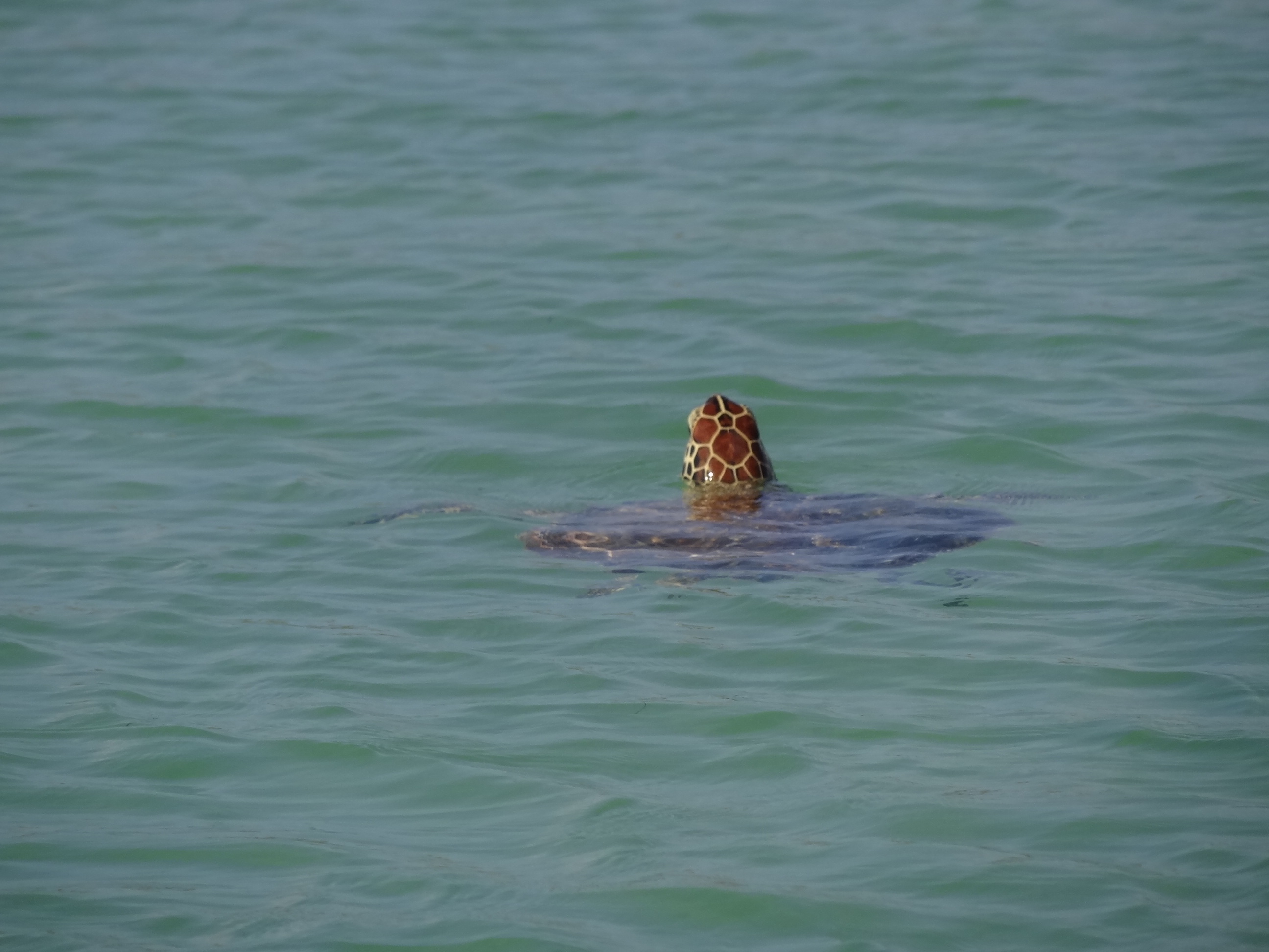 Top priority was to get in and find the green turtle area. A reviewer on ActiveCaptain gave good directions, saying that once in the lagoon one needs to follow the left branch into the deep green section. That sounded simple enough and we only almost messed up once! Sure enough toward the dead-end section to the left, the water was much deeper and greener; best of all, filled with at least a dozen green turtles. Shy ones though and they don’t give you much time to photograph them. We drifted and paddled; using the outboard just enough to keep us off the rocks. One guy was more curious, or just not paying attention because twice he surfaced within 10ft of our bow, looked up at us and dove back down. As if to say, “hey I see you and no you can’t take my picture, so there!” And right he was, but I did manage to track another and caught him as he surfaced.