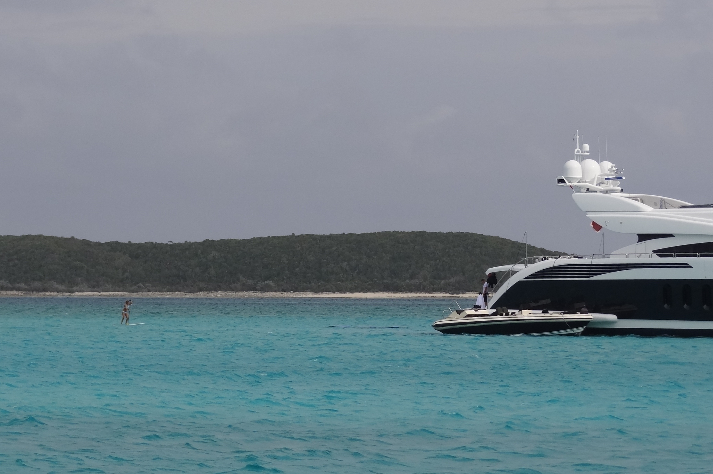 What big storm? This gal can paddle in any weather..trying to reach her yacht…