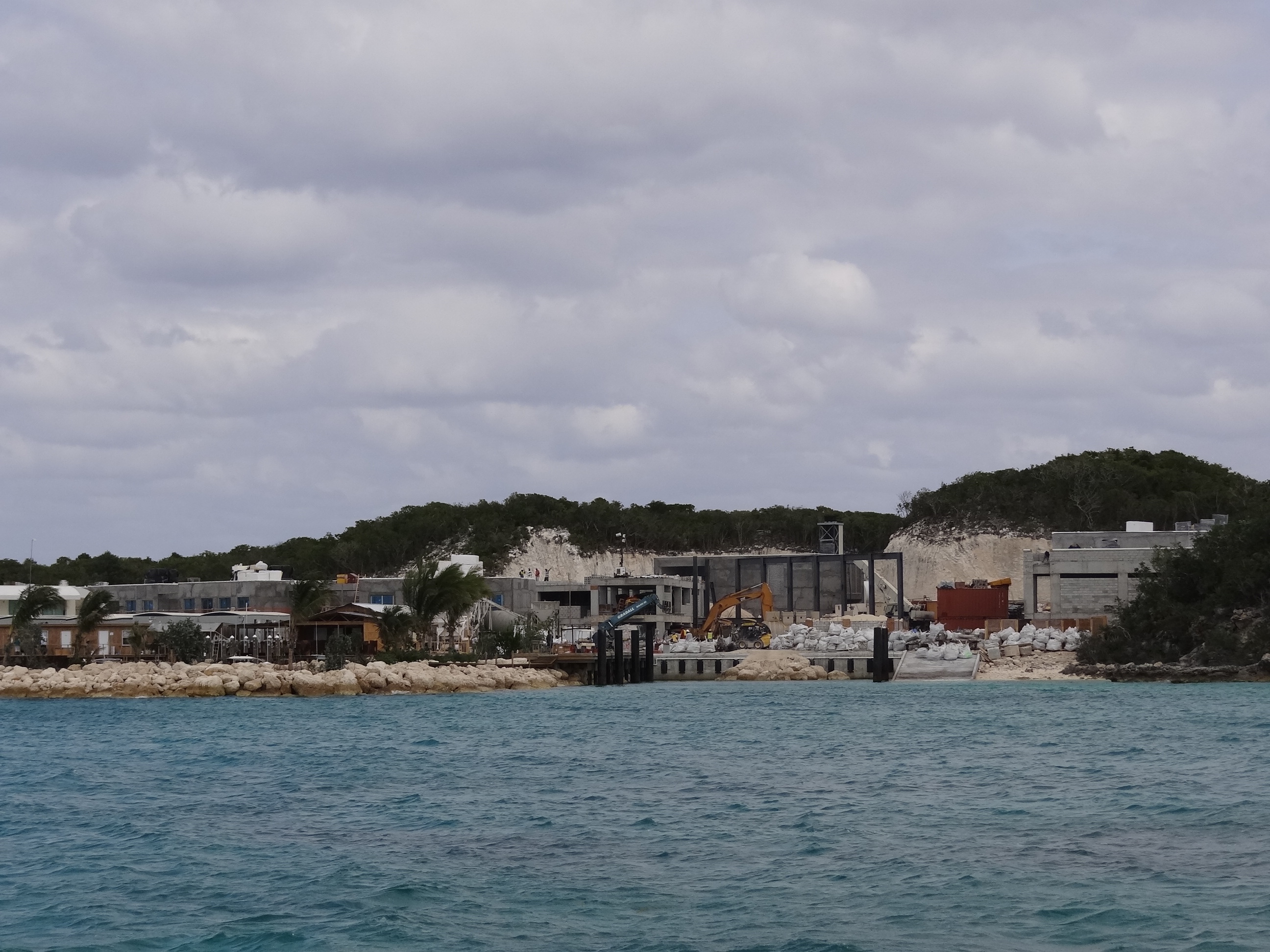 Sunday was a post frontal cloudy, cool day and we kept busy with baking muffins, washing clothes in a bucket and discussing where to move to once the wind shifted north. Considerable discussion also ensued because in very windy conditions I am at the bow while Russ takes the helm. This infrequent role reversal requires establishing good hand signals as well as a backup plan should I have poor job performance. Fortunately we had this: PPPPPP- the 6Ps. Leave a comment if you business folks know what all those Ps stand for. The one possible spot to re-anchor in was on the other side of Bell, which was now in the lee, but a major project was underway so we passed that by and headed down toward a spot on the south end of Pipe Cay.