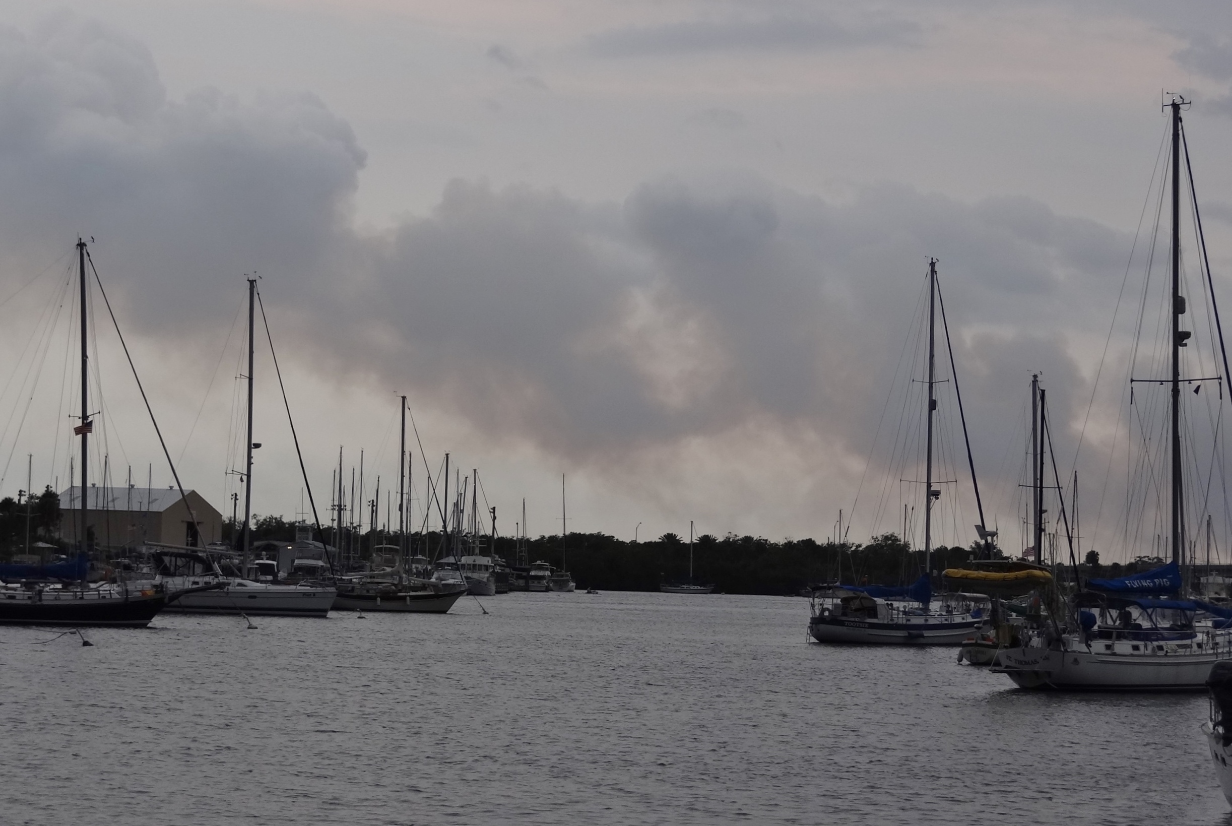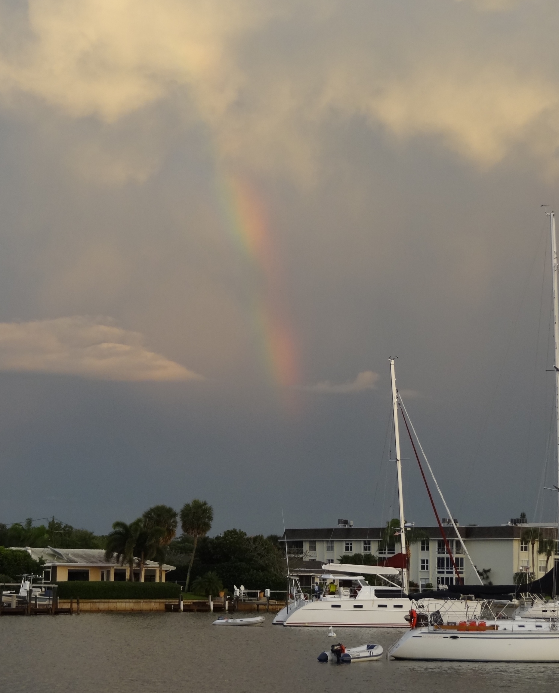 Just because we scooted out of the Abacos early didn’t mean we’d escape some of the frontal systems that were headed south. Sat and Sun 3/23 and 3/24 were extremely hot days with highs in the upper 80s. A massive rain and T-storm system covered the area from northern Florida (St Augustine) into North Carolina, undoubtedly dumping several inches of rain in a day-long deluge. Glad we missed that one. Our turn came Sunday with a small system, once again sent over from the Gulf Coast.