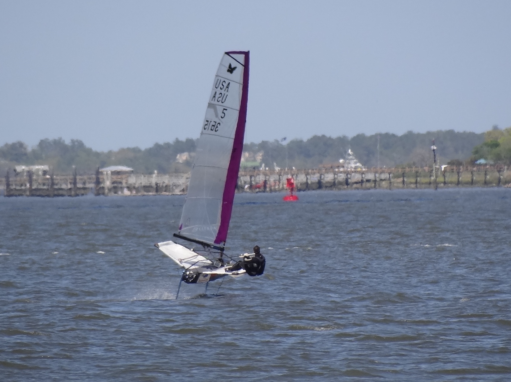 The most intriguing and interesting sight took place right outside the marina entrance in Charleston Harbor. These are cutting edge sailing-on-foils gizmos. Amazing to watch- yes a video would have been a good idea, but only have “stills”. Any idea what they are? Another cruiser said he’s seen them in Newport.
