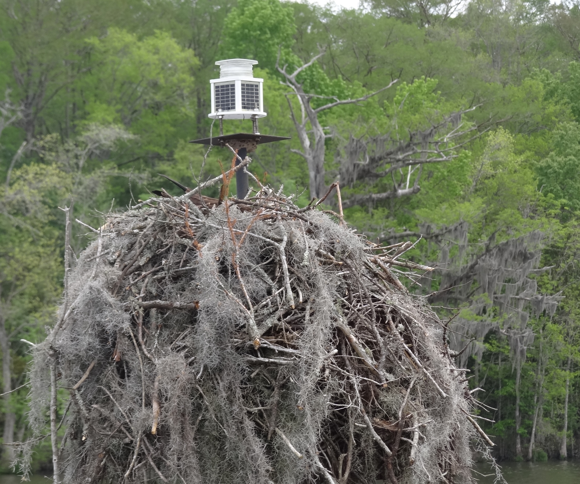 Sturdy nest completely decorated. Perfect for the osprey who appreciates color and a busy neighborhood
