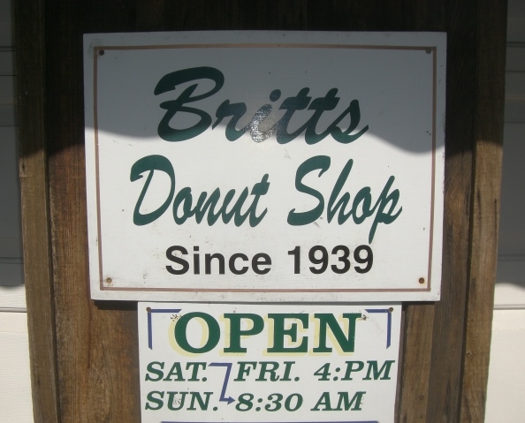 All the way down in the corner are floating docks for dinghies and boats under 26ft. We were the only dinghy. This time of year is not quite in season and many shops are only open Friday- Sunday. We started getting very excited at the mention of Britts Doughnuts located near the boardwalk. ActiveCaptain reviews mentioned it and when Russ checked Yelp and Travelocity, wow did this place sound like the makers of a doughnut to die for. A business started in 1939- surely they’ve perfected that one doughnut which sounds like a cross between Krispy Kreme and a French cruller. Then we discovered that their hours were really odd, but who cares? Open on Wed they were not.