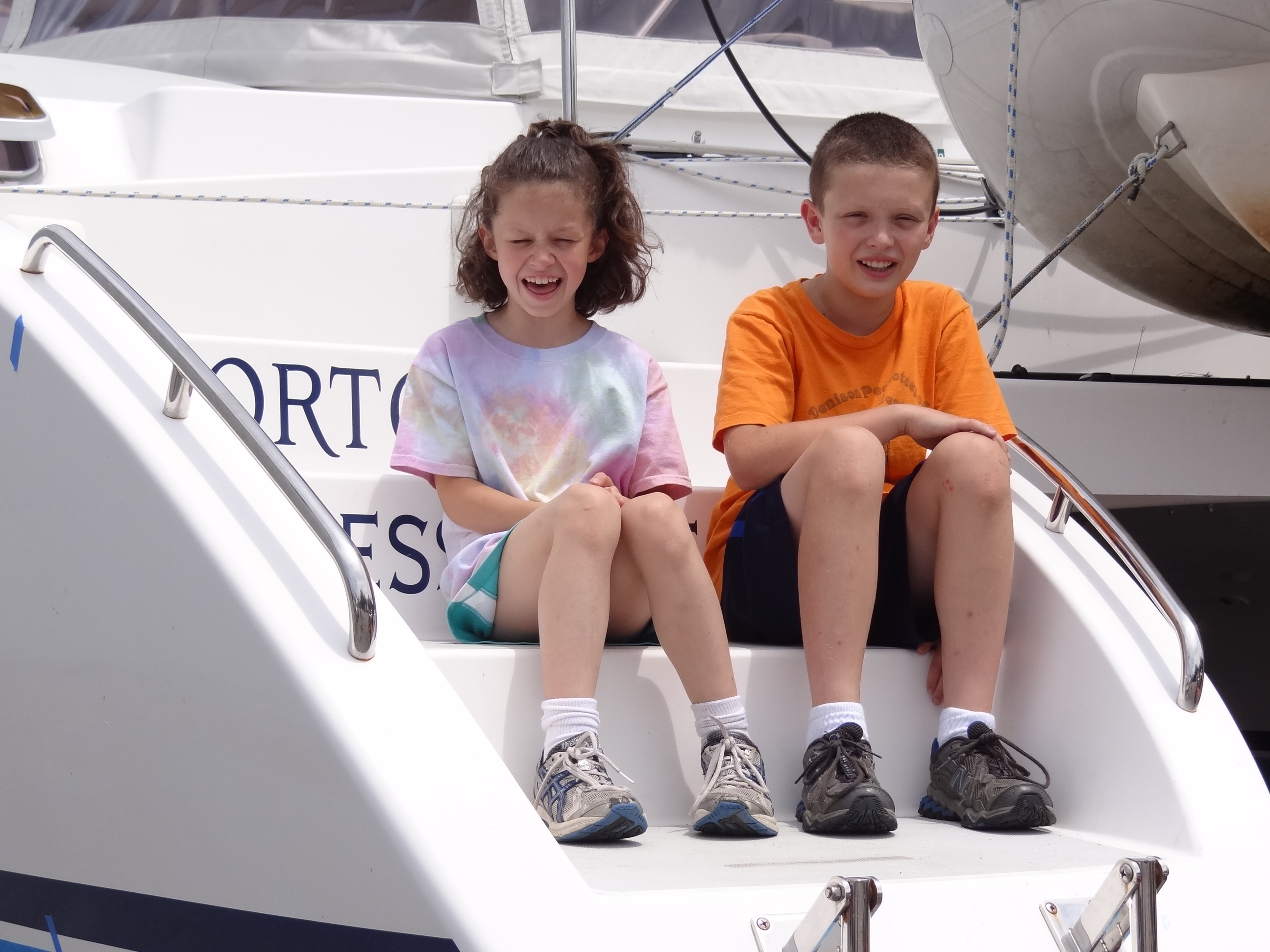 Last week we enjoyed a visit from a friend and her two fantastic children; the youngest people (the kids) ever aboard. Now granted they (and I’m talking about the kids) know about camping, tractors, kayaks and attend summer camps with small boats, but their knowledge about the boat’s systems and how things worked was amazing. Most the questions, and I fielded a boatload, were not of the “what does this do?” variety. In many cases the oldest told me what things did. They moved around the boat (ah, to be so young) like monkeys; inquisitive and observant. Full of knowledge to share; they did. I received intelligent and thoughtful answers to the “where would you find”, “where does XYZ come from” and “what does this look like” questions I posed to them as we inspected Ortolan inside and out. The exclamations of “oh this is SO cool” and “you are SO lucky” gave a boost to our flagging morale.