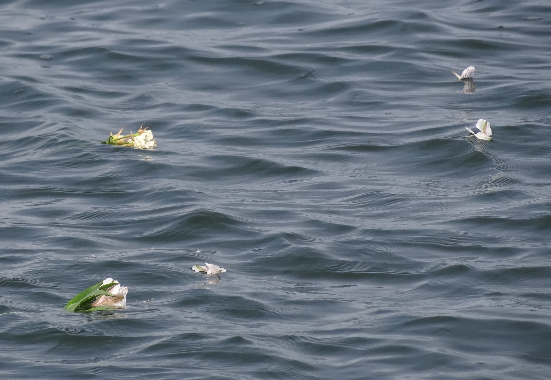 The lovely basket of flowers given by Russ’s cousins, aunt and uncle came along with us to the Copper Beech and not wishing for its early demise, we brought it back aboard with us. We re-purposed it as a memory as if the flowers were ashes and scattered them along the way from Sag Harbor back to CT.
