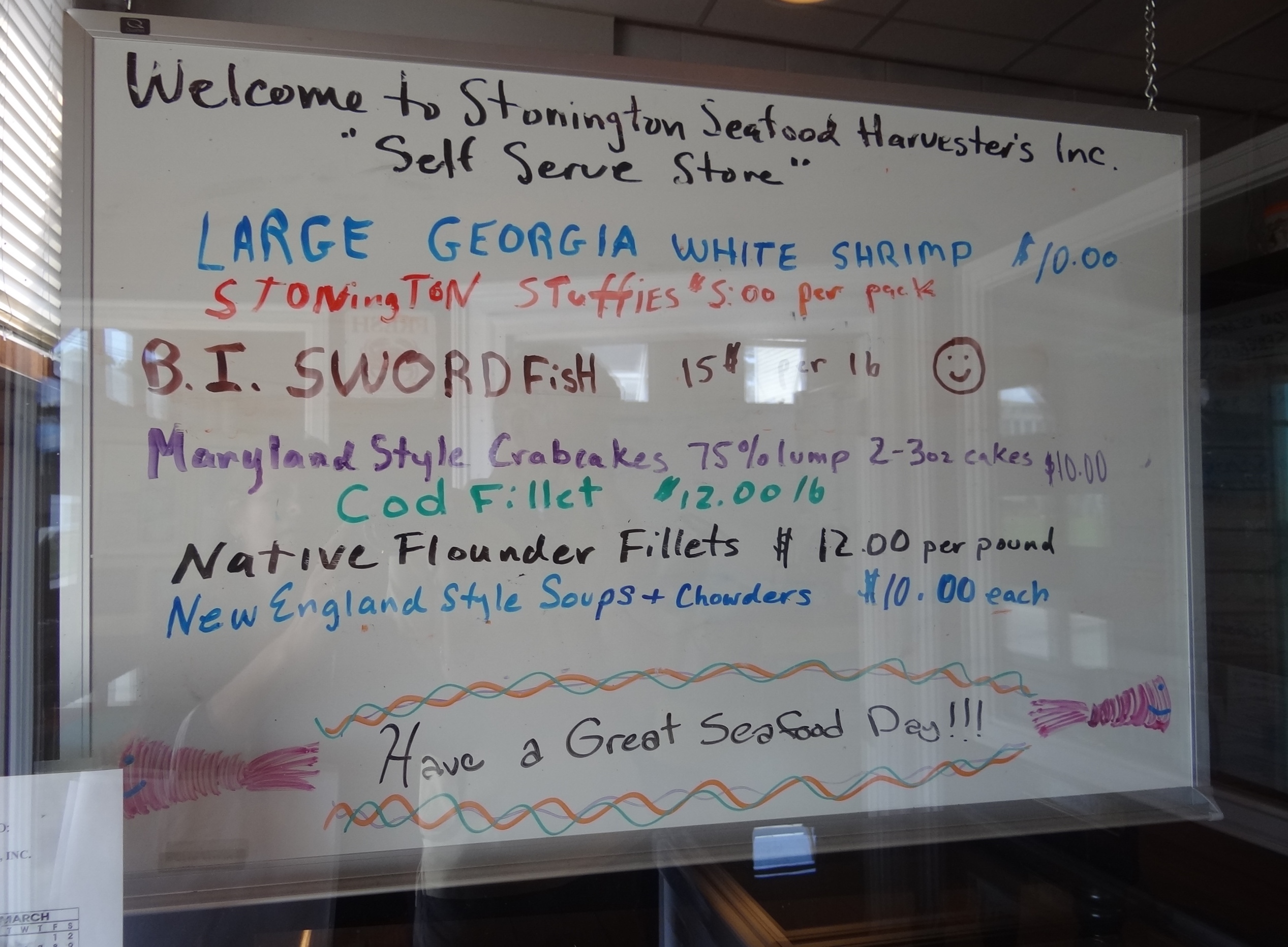 Stonington is home to the last remaining commercial fishing fleet in Connecticut. Over near the commercial docks you will find the very unique Stonington Seafood Harvesters, Inc. The small building with the red awning at 4 High St offers self-serve cases of frozen-aboard-ship fish, scallops, shrimp and stuffies. The BI swordfish was so delicious that we went back for more the next day.