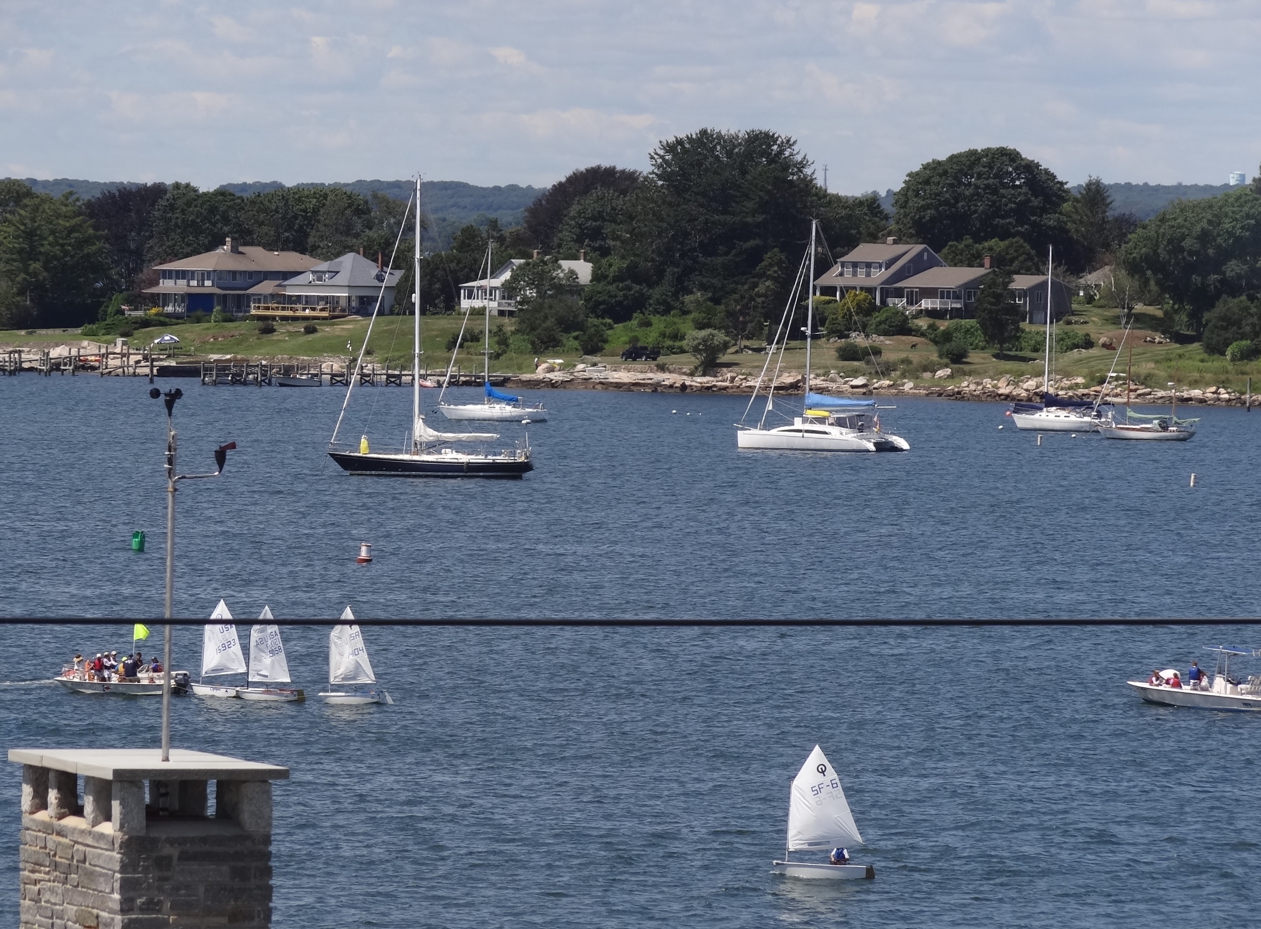A bazillion sailing craft in the harbor, plenty of Optis and other small sailing vessels out every day joy sailing and racing makes for fine scenery against the backdrop of lovely historic homes.