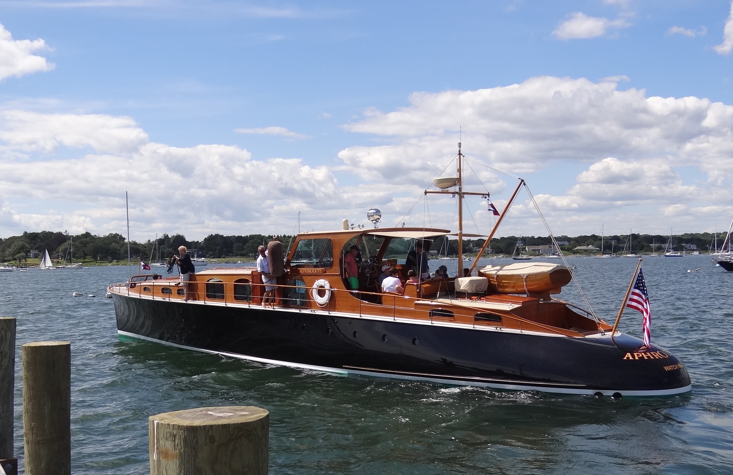 Thursday’s lunch found us at Skipper’s Dock; let me recommend the Blood Orange Margarita. Aphrodite was tied up at the dock awaiting her passengers for the return trip to Watch Hill. I correctly picked the restaurant’s patrons who would be returning. Perhaps the perfect, yet casual attire, even for those under 15, as well as many lobster shells gave them away. We had a few minutes to get closer before she took off; I mean who wouldn’t want to get an eyeful not to mention a ride in this gleaming beauty.