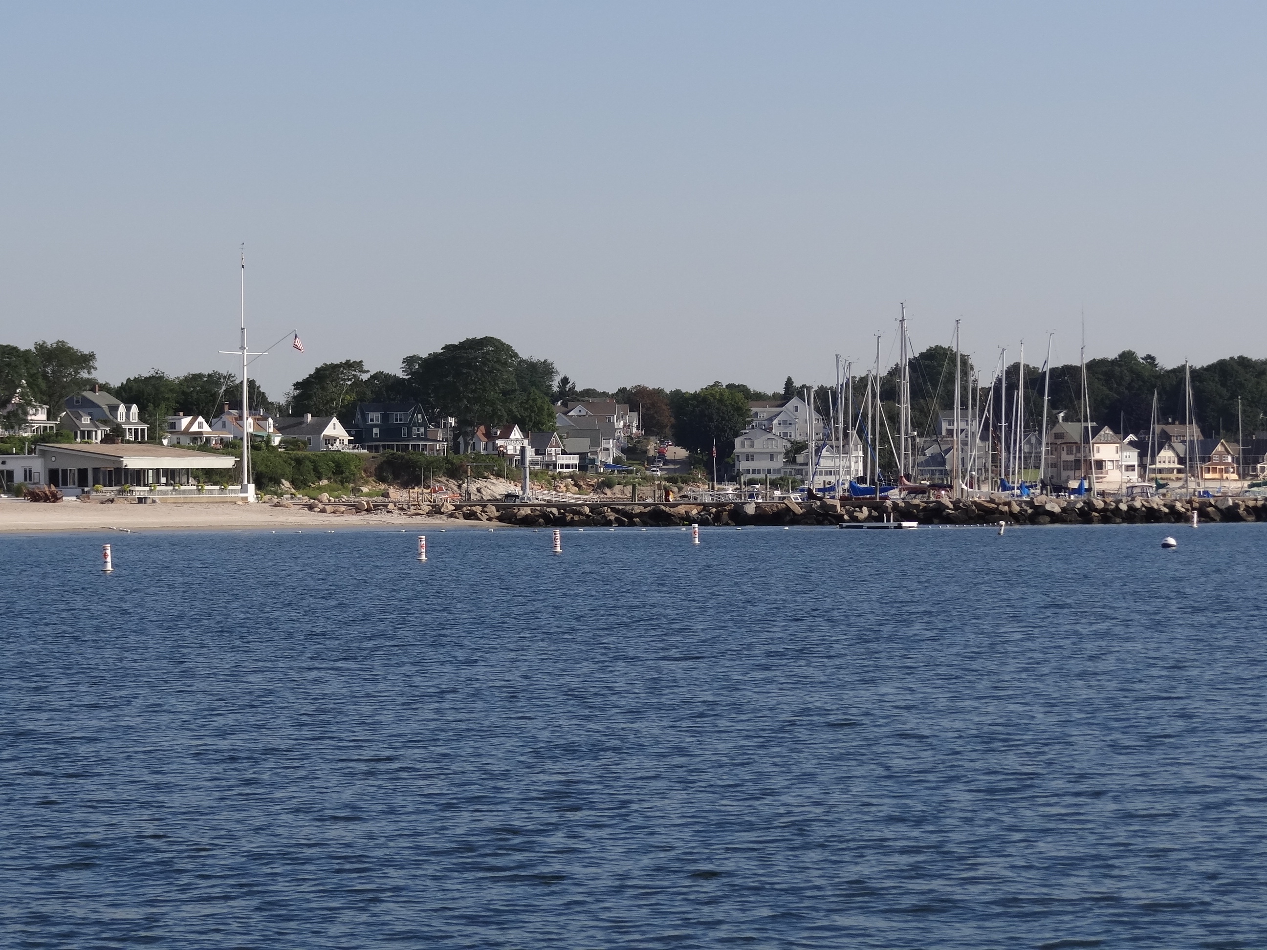 Friday late afternoon found us anchored off Crescent Beach in Niantic. A SE wind direction gave us a pleasing beach view as opposed to one of the Millstone nuclear power station to our NW along Waterford’s shore. This isn’t much of a cruising destination; however, for us it was a new stop and a good way to prolong our eventual return to Deep River home base.