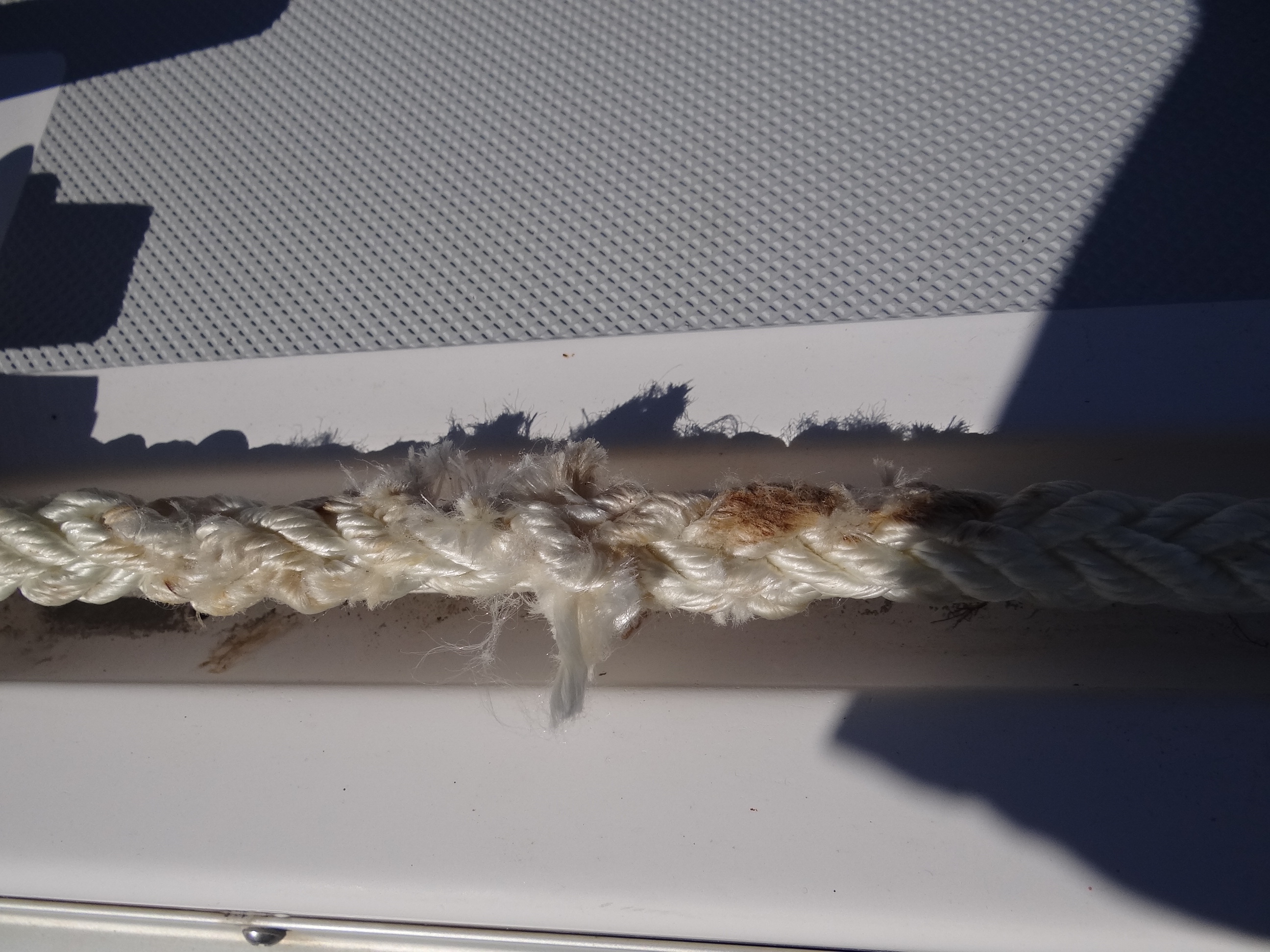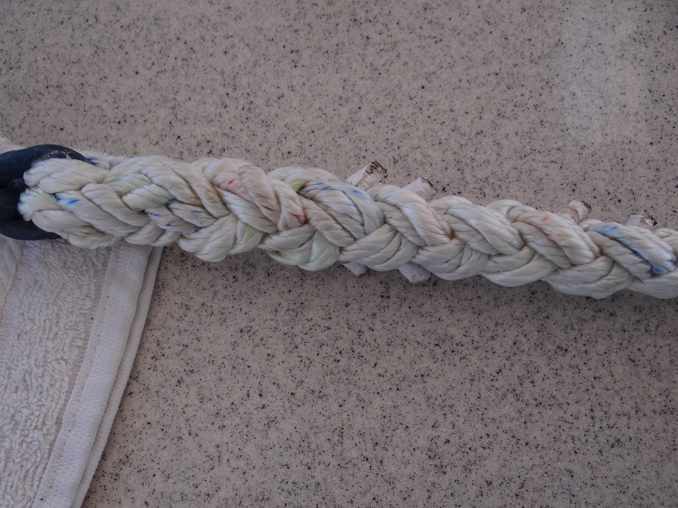 Well, he went on to say, you could wrap electrical tape around it, but then again with just one strand mutilated the pull strength is only down 1,000 lbs. Excuse me, this is our home not simply a boat we use once in a while. Thanks so much, good-bye.