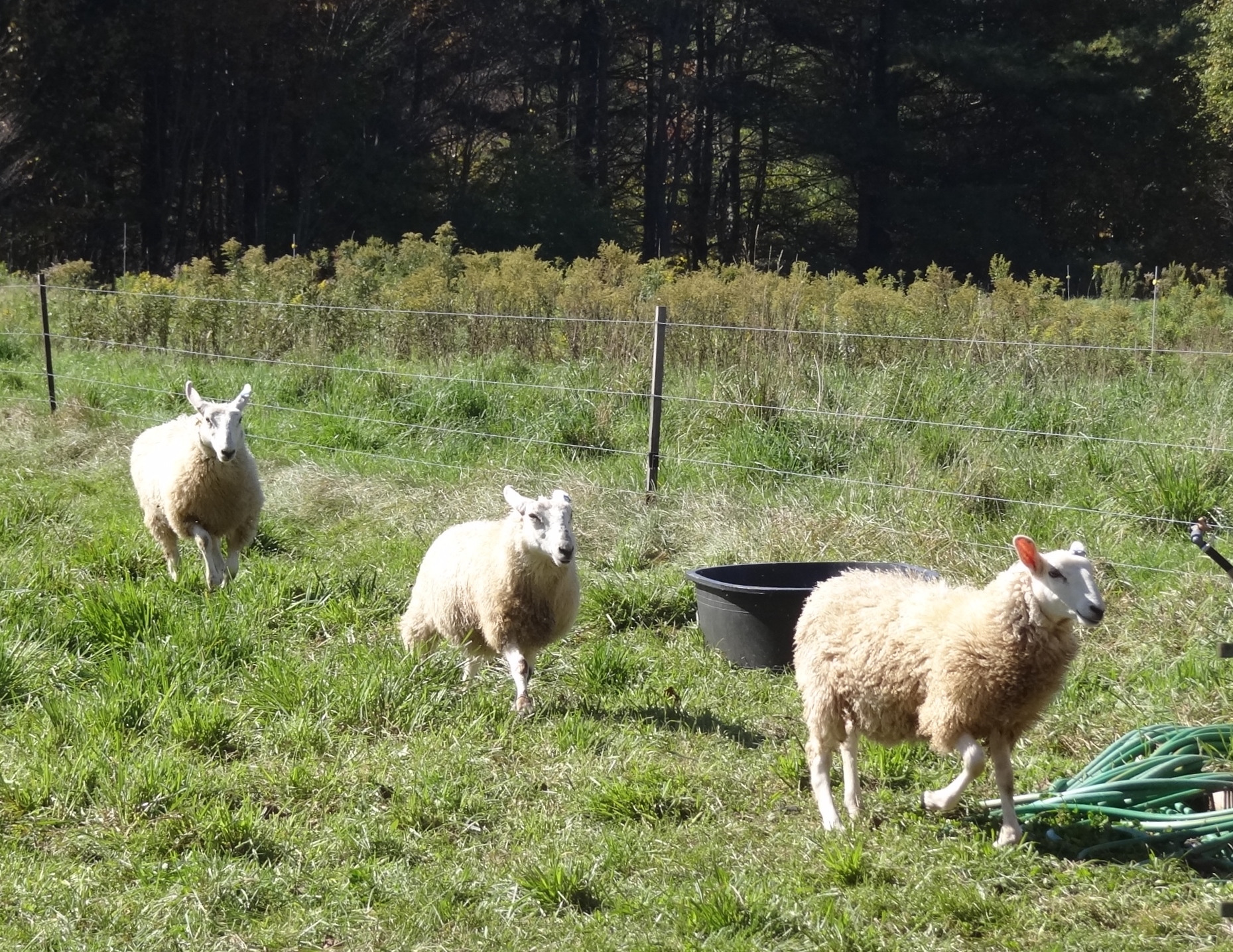 At Green Mtn College it’s not against the rules! In fact this professor-suggested move was encouraged and further approved by the farm crew. Who is this “they” of whom I speak? Let me introduce Corn, Beans and Squash, dubbed “The Ladies” by Lily. Purchased by our son during the “Yurt Summer of Sheep” to raise for dinner (I can’t quite bring myself to say the “S” word) they would remain at the farm near Montpelier until their time was up in November. Meanwhile, Benj would make all the arrangements necessary to turn them from crazy grazin’ sheep into choice cuts of chops and delicious sausage.