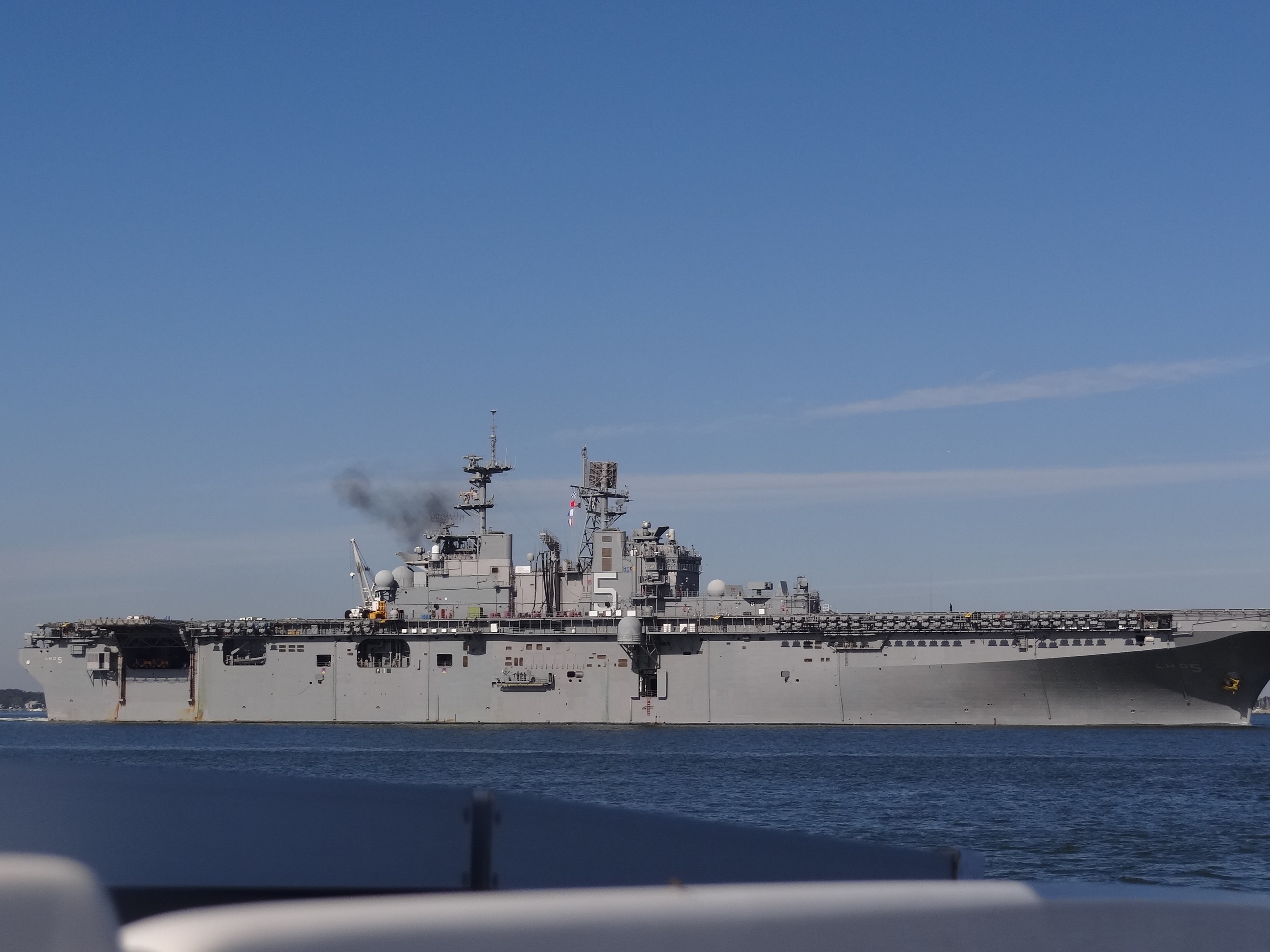 Naval aircraft carrier #5 announced the ship was preparing to leave the dock and heading out to sea. Our ears prick up when we hear any naval vessel on the airwaves. This announcement is made on CH16 and is a bit lengthy. The gist of it is who they are, where they are headed and what actions other vessels should and should not take. Other vessels need to keep clear by at least 100 yards and if they don’t they will be subject to, “….including arrest and deadly force.” Well, alright-y then. We kept our distance and cut across the channel before #5 arrived.