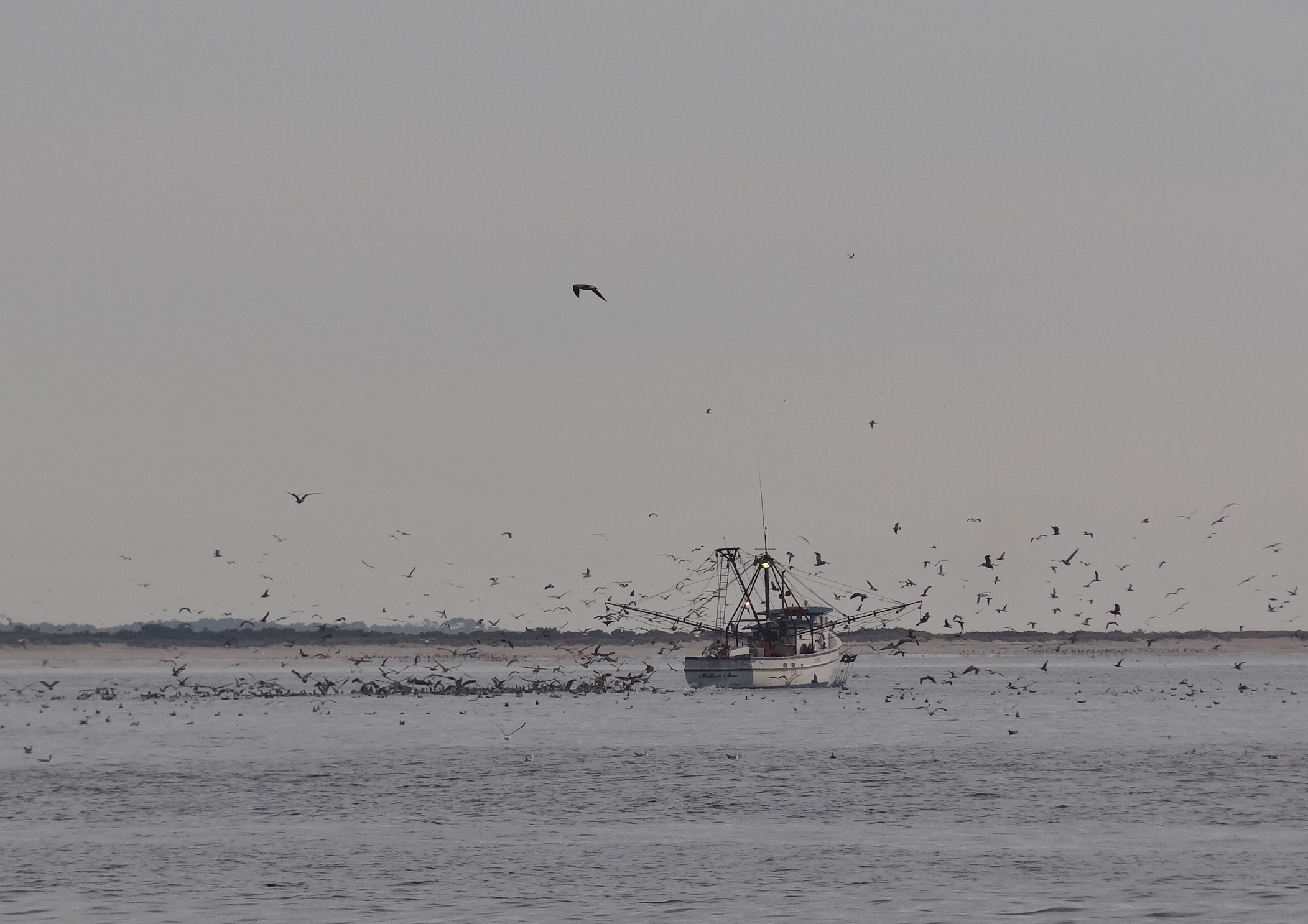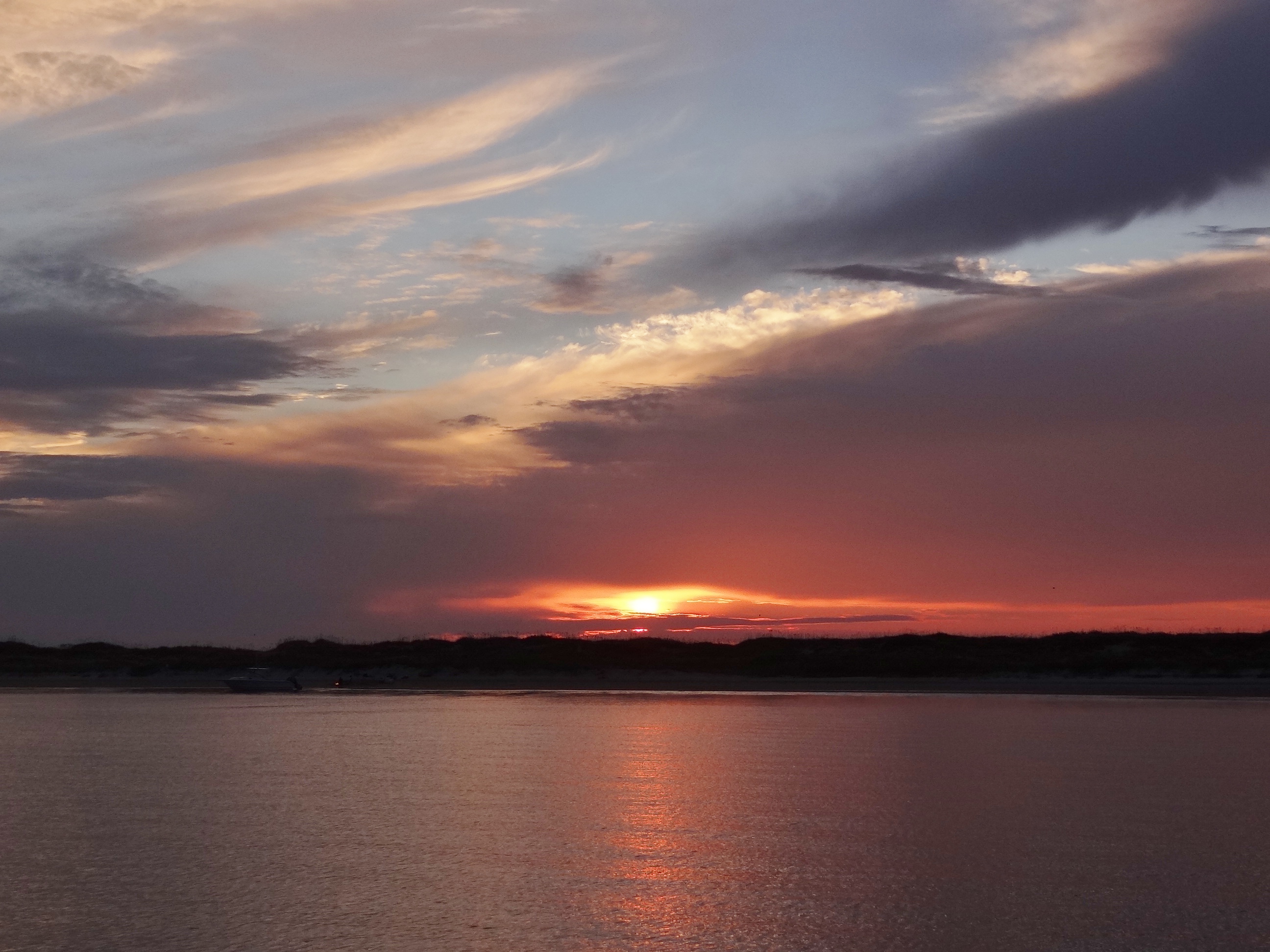 Armed with my usual tools of the beach combing and photo-taking pursuits, we headed ashore with plenty of beach exposed near low tide. How many is a bazillion? Ok now double that. A veritable shelf of shells lined the beach on the inside (bight side); the ocean side even more. No trip to North Carolina’s Outer Banks should skip Cape Lookout; sitting at the end of the line so to speak. Part of one of world’s last natural barrier islands, Cape Lookout offers something for everyone; from PWC-ers to hikers and cruisers. Small boats spent much of the day net fishing close to shore. They looked successful.