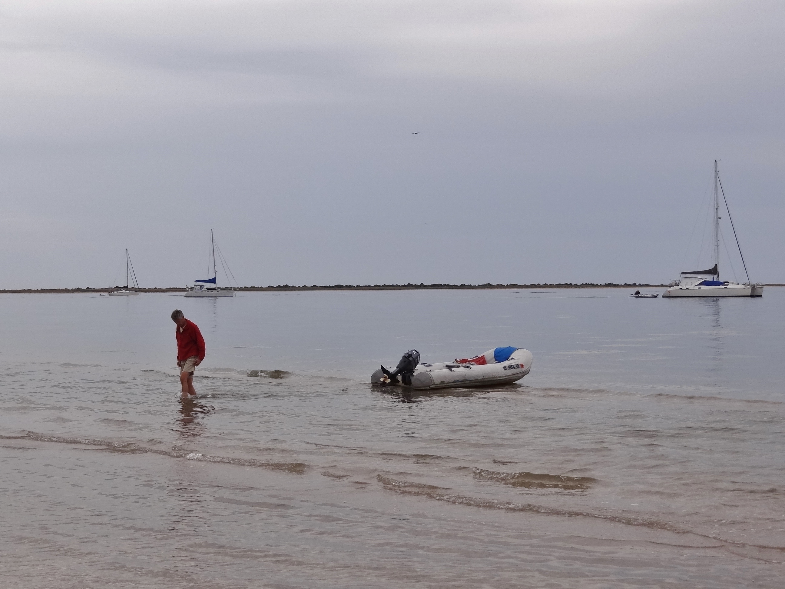 Warm day, clear water, long stretches of shell covered beach dotted with dunes, dinghy in to the beach and step into water; sounds much like the Bahamas to me. Ignore the very deep water (we dropped the hook in 26ft), the lack of rocks and coral (both in and above the water) and you could easily be convinced that your wish to “just get there!” had miraculously occurred. We joined a handful of other cruising boats who appeared content to admire the shore from the comfort of their vessel.